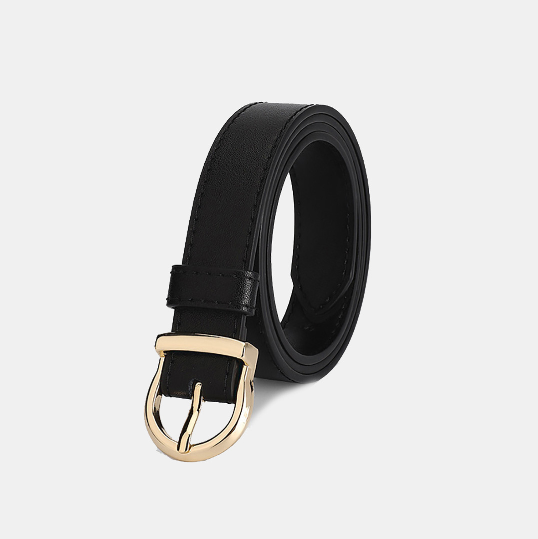 Bản dây vừa phải, form gọn gàng thanh lịch, giúp tạo điểm nhấn tinh tế cho vòng eo.Khóa xỏ kim tone vàng ánh kim sáng bóng, thiết kế bo tròn mềm mại mang lại vẻ nữ tính và hiện đại.