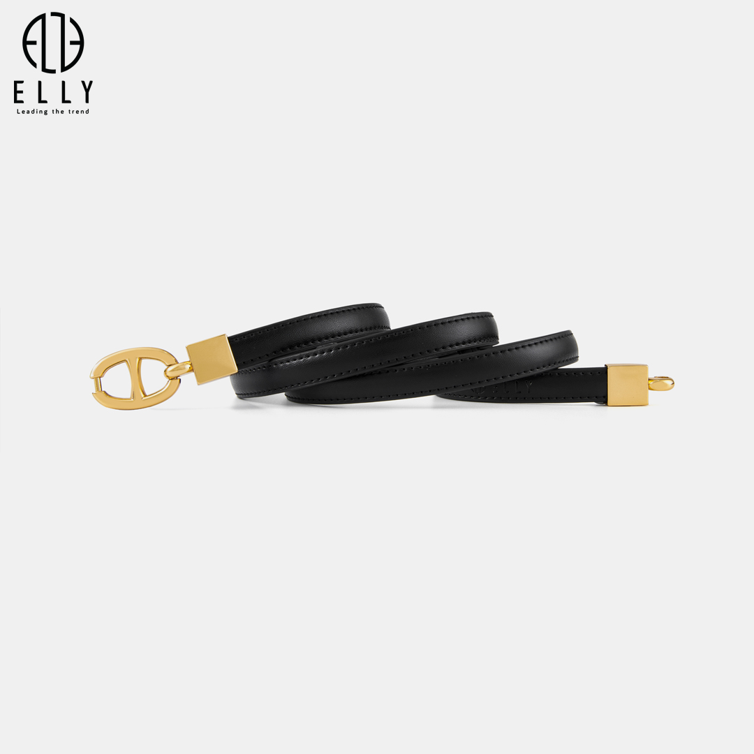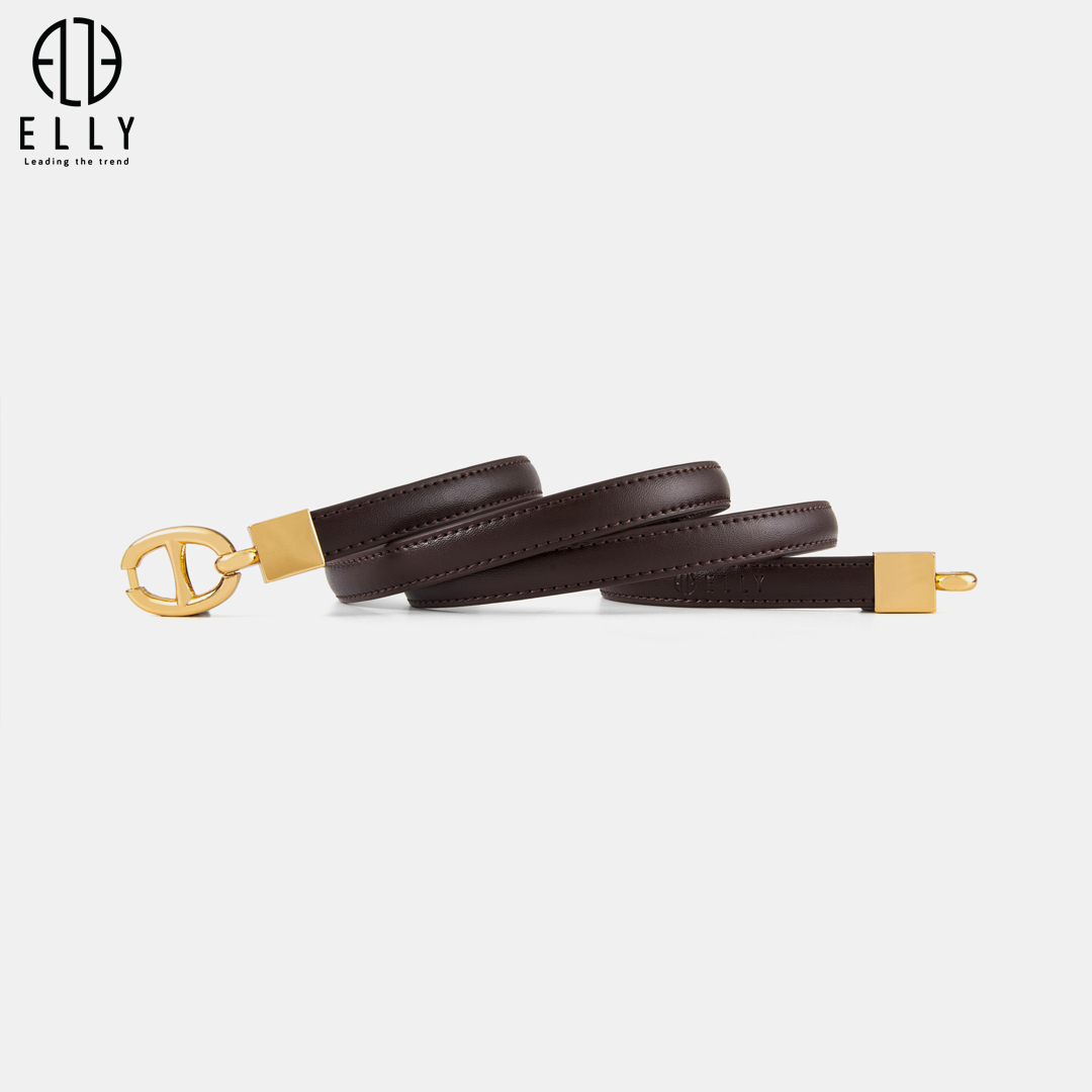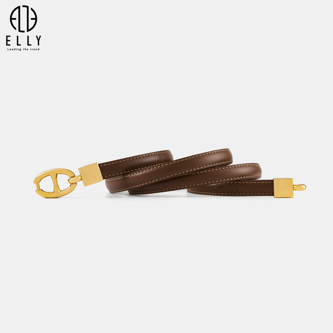 Logo ELLY được dập chìm trên thân dây lưng đầy tinh tế, khẳng định chất lượng, nguồn gốc xuất xứ cao cấp của sản phẩm