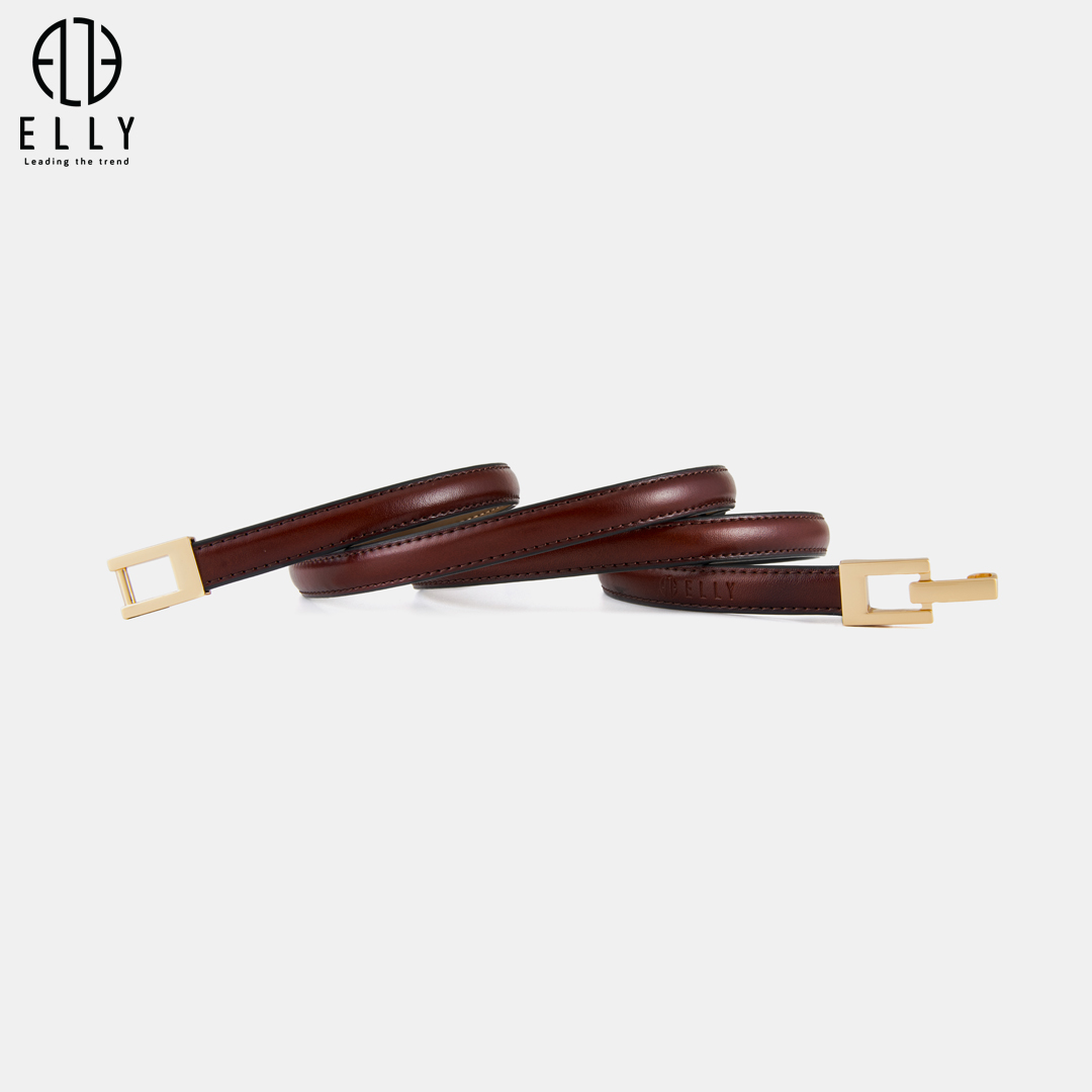 Logo ELLY được dập chìm trên thân dây lưng đầy tinh tế, khẳng định chất lượng, nguồn gốc xuất xứ cao cấp của sản phẩm