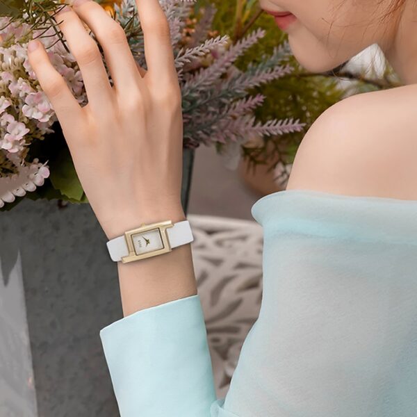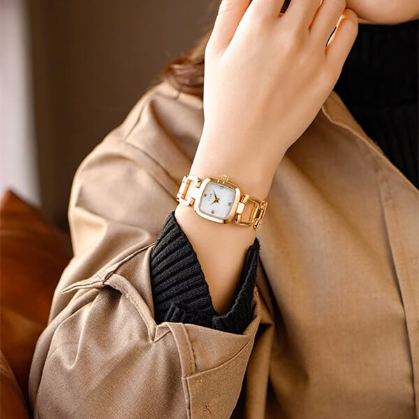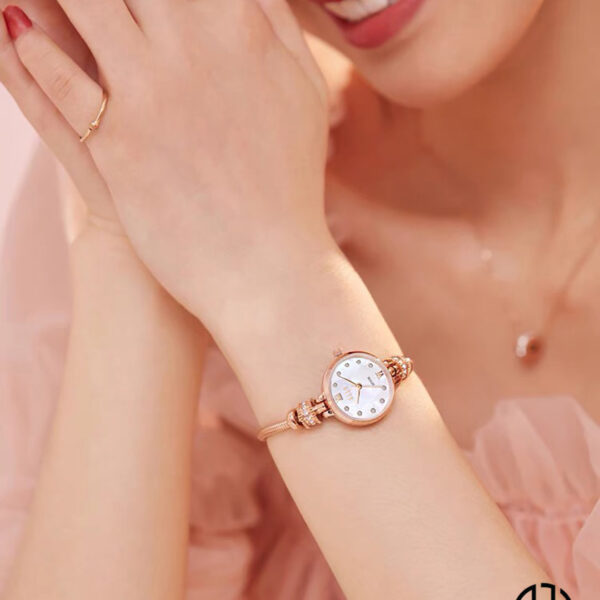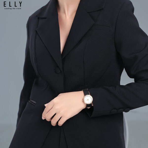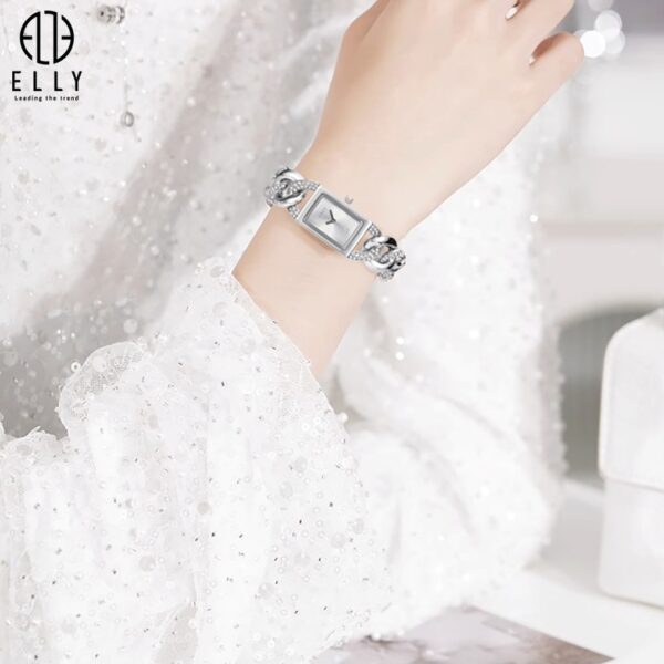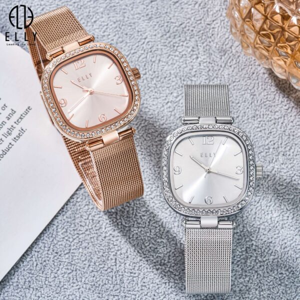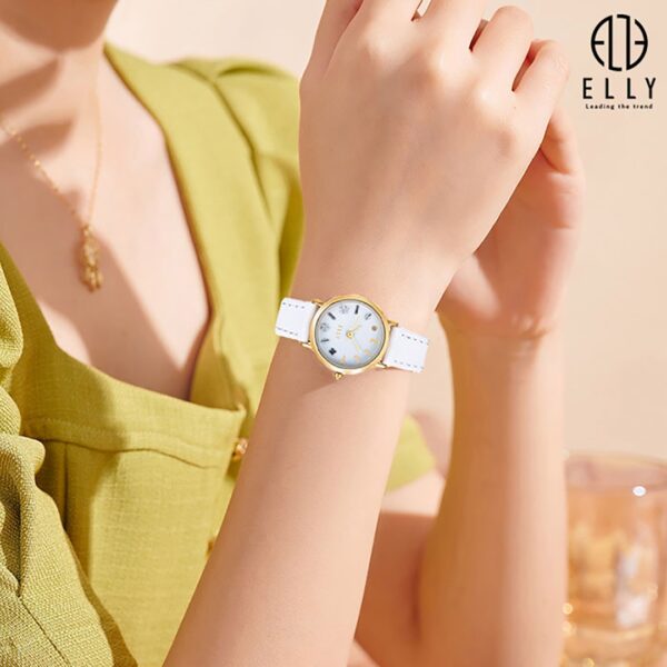 Thiết kế mặt ngoài viền đá kính Sapphire chống xước, chống nước 3ATM cùng khoá bấm sang trọng in tên thương hiệu ELLY nổi bật nhằm khẳng định nguồn gốc xuất xứ chất lượng sản phẩm!Kích thước vừa vặn thanh mảnh đem lại cảm giác nhẹ nhàng trên cổ tay