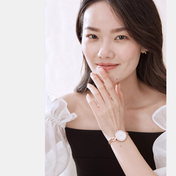 Những viên đá nhỏ tinh xảo được gắn trên đồng hồ tạo hiệu ứng lấp lánh, sang trọng cho toàn bộ thiết kế!