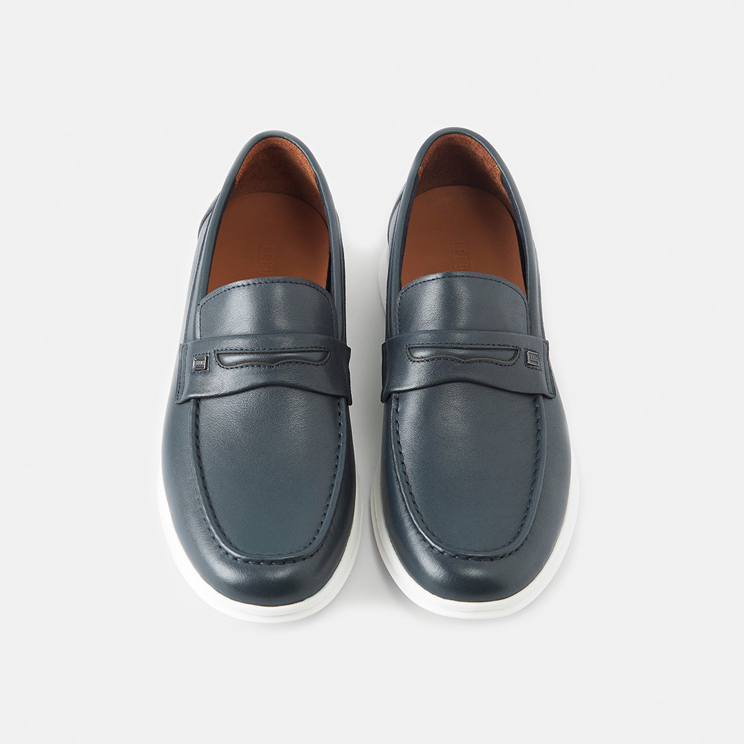 Chi tiết vắt da ngang ở mu bàn chân – biểu tượng đặc trưng của Penny Loafer – được nhấn nhá thêm bằng mác kim loại khắc logo LECOS, tạo điểm nhấn tinh tế và nhận diện thương hiệu rõ nét