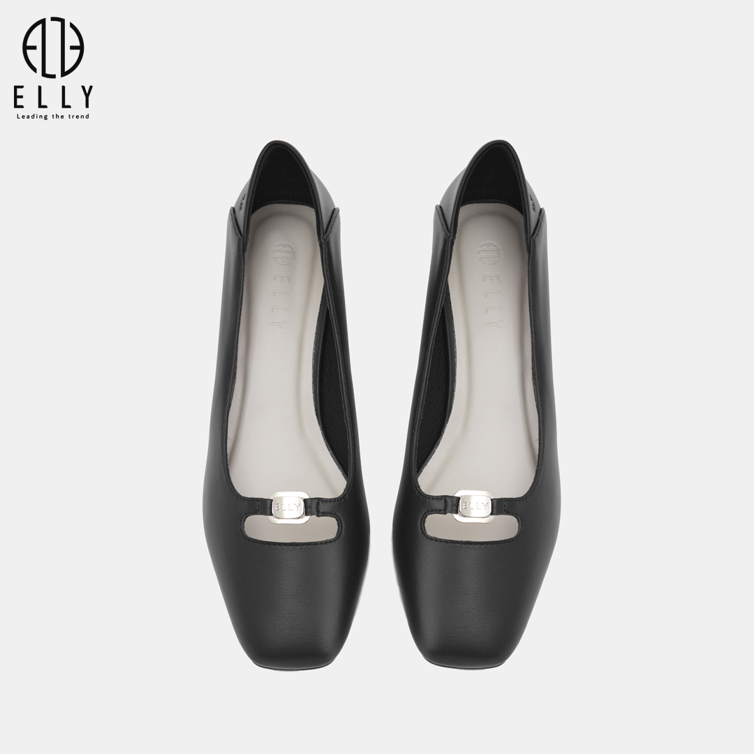 Trang trí trên mũi giày là chi tiết kim loại sáng bạc hình chữ nhật bo tròn, khắc logo ELLY – điểm nhấn sang trọng giúp đôi giày nổi bật hơn.Đế cao su có đường vân chống trơn trượt an toàn khi di chuyển; dập size rõ ràng phía dưới.