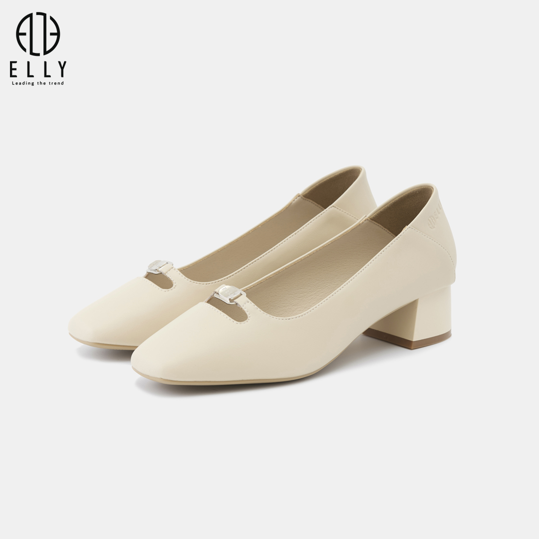 Tông nude nhẹ nhàng, tôn da, làm chân trông dài và thon hơn.Gót trụ vuông chắc chắn, chiều cao vừa phải cho bước đi vững vàng.Cạnh giày dập tên thương hiệu ELLY tinh tế, thể hiện dấu ấn thương hiệu.