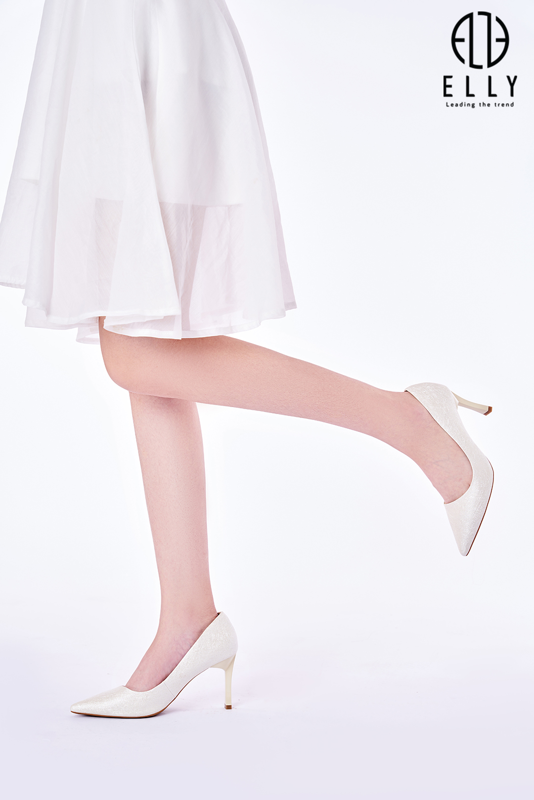 Đôi giày cao gót của ELLY khiến người mang có cảm giác như đôi chân được nâng trong ánh hào quang nhờ sắc nude trang nhã ánh nhũ lấp lánh cực sang chảnh