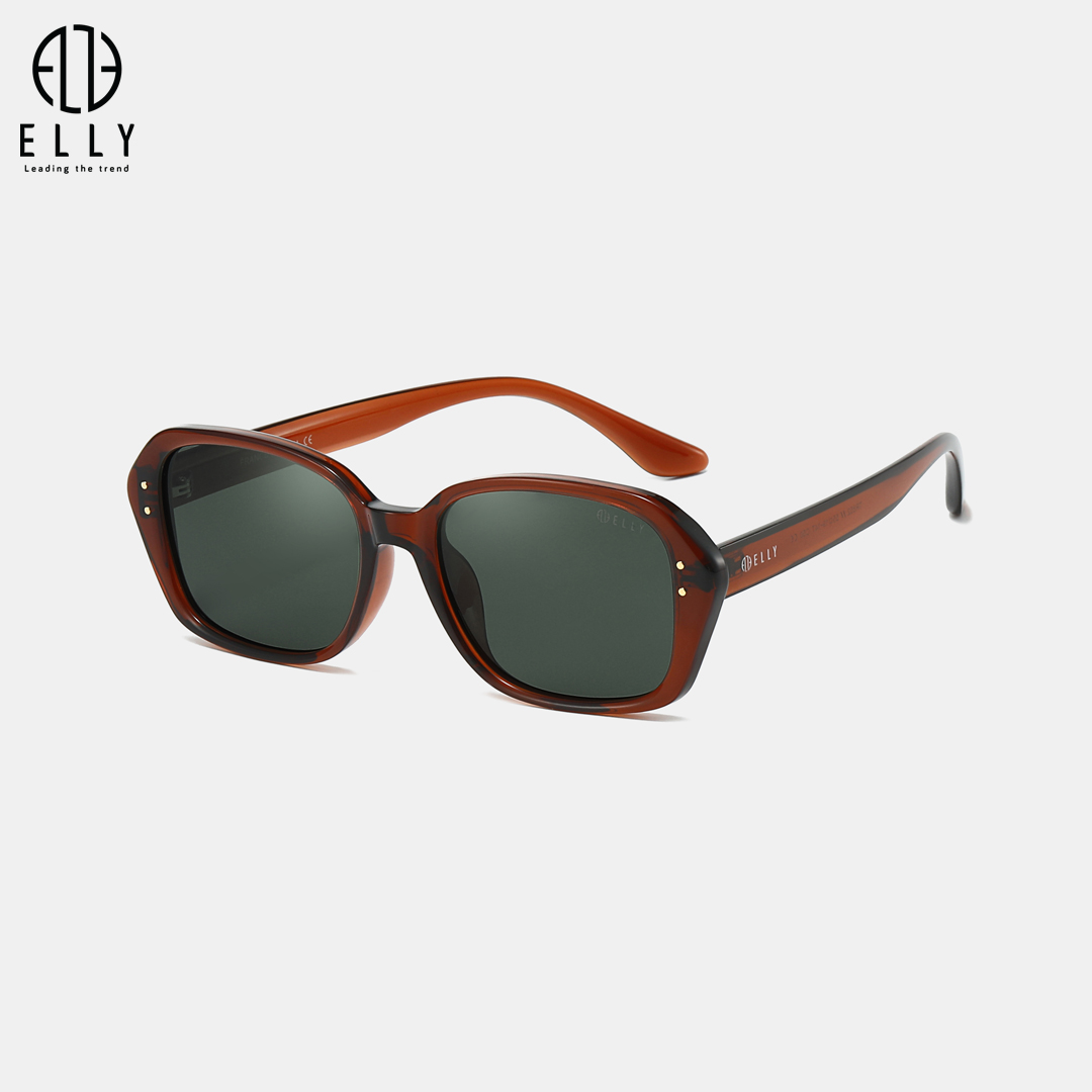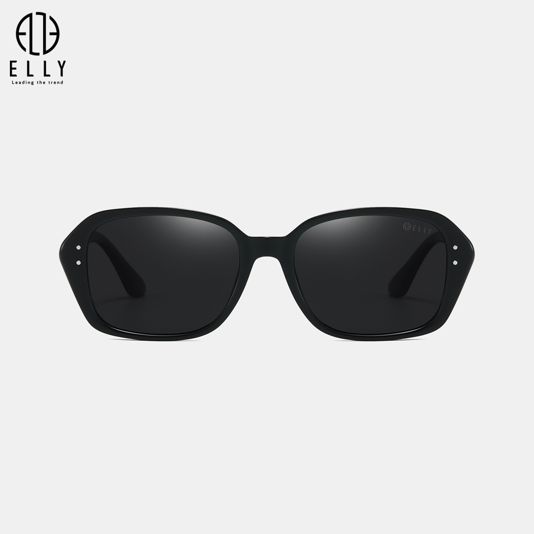 Tên thương hiệu ELLY được khắc tinh xảo trên cả mắt kính và gọng kính, thể hiện sự chỉn chu và nhận diện thương hiệu rõ nét.Phần trước gọng được gắn 2 chi tiết đinh kim loại màu bạc, tạo điểm nhấn cá tính, tăng nét hiện đại và cao cấp cho sản phẩm.