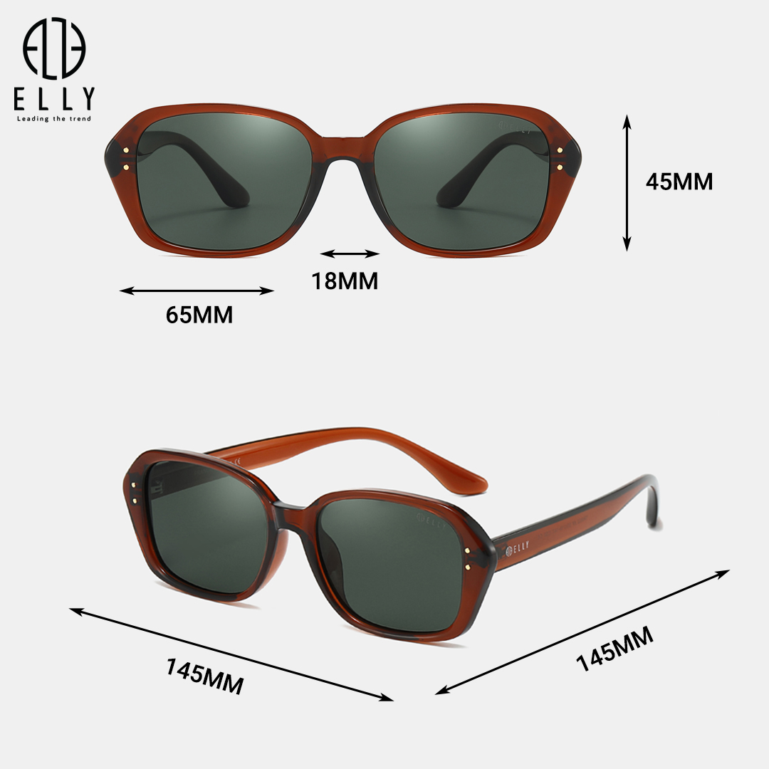 – Thương hiệu: ELLY. – Sản xuất: Trung Quốc (theo tiêu chuẩn chất lượng của thương hiệu ELLY). – Màu sắc: Đen, nâu. – Chất liệu: Gọng nhựa TR90. mắt kinh phân cực TAC có khả năng chống tia cực tím (UV400), chống ánh sáng mạnh, chống lóa và giúp tăng độ rõ nét khi nhìn. – Trọn bộ sản phẩm gồm: Kính mắt nữ cao cấp ELLY – EK198 + Túi đựng sản phẩm + Khăn lau kính + Hộp. – Bảo hành: 06 tháng (với lỗi do sản xuất).