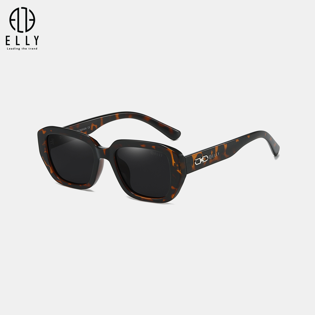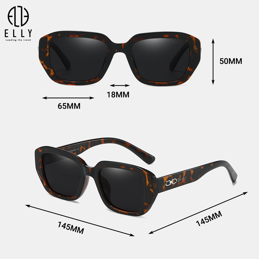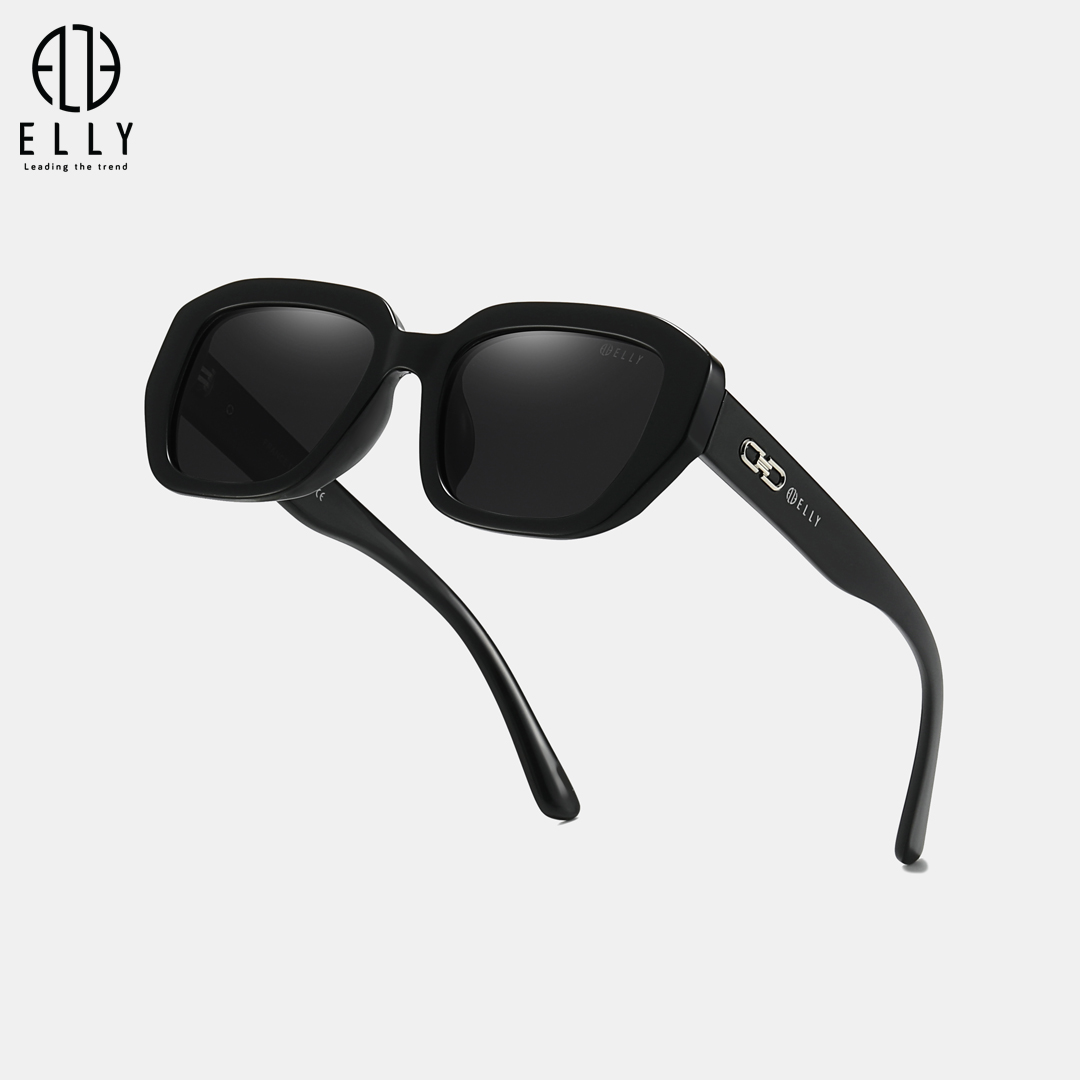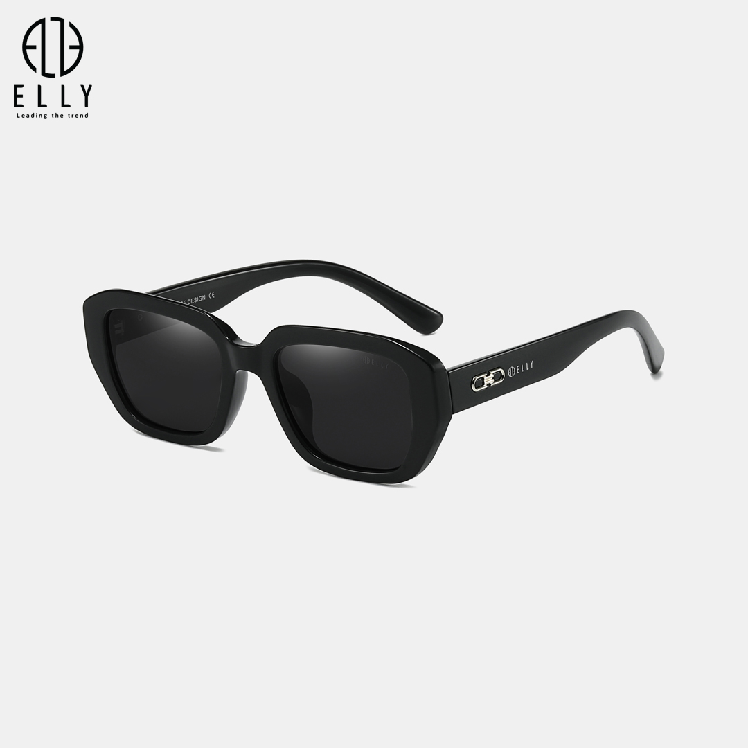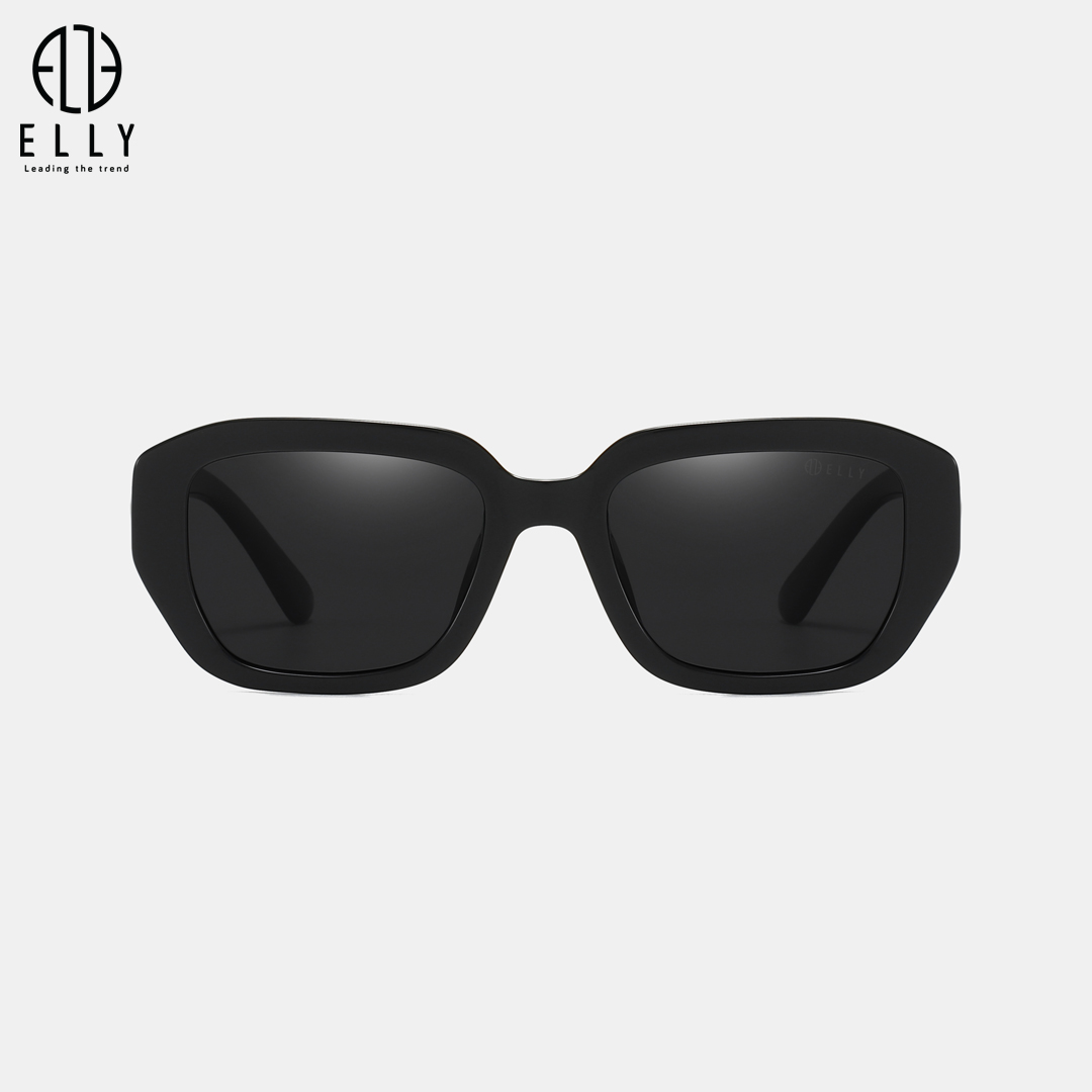 Dáng vuông bản to (oversize square) nhưng được bo góc mềm, tạo cảm giác hài hòa và nổi bật khi đeo.Tên thương hiệu ELLY được khắc tinh tế trên mắt kính và gọng kính.Gọng kính làm từ nhựa TR90, nổi tiếng về độ bền.