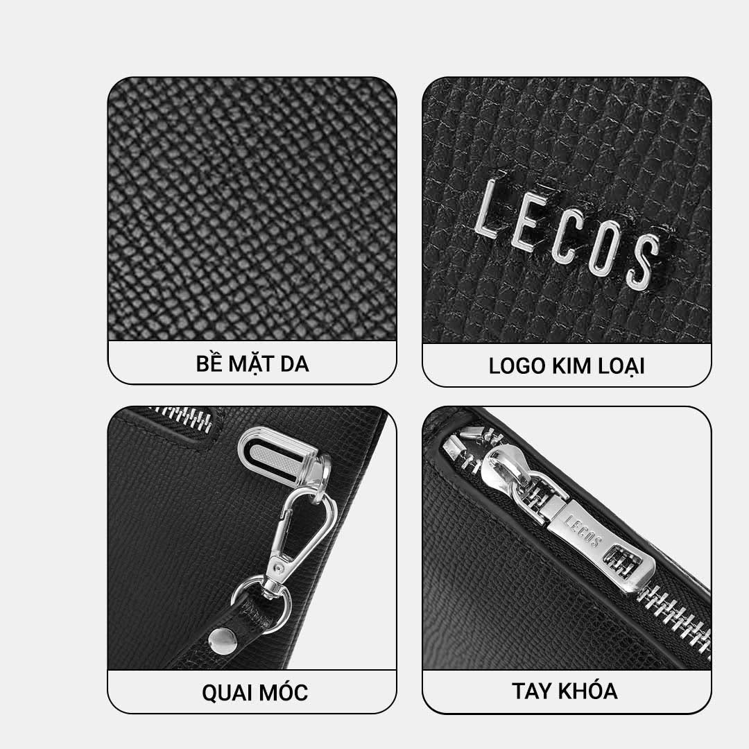 LECOS LC1 với thiết kế tương đối rộng rãi, có nhiều ngăn, có thể đựng điện thoại và nhiều đồ dùng cá nhân khácLogo LECOS màu bạc sang trọng được gắn mặt trước thân clutch; được khắc trên móc cài, khoá kéo bằng kim loại màu bạc sang trọng nổi bật thương hiệu và khẳng định chất lượng sản phẩm cao cấp chính hãngPhiên bản màu đen sang trọng, lịch lãm