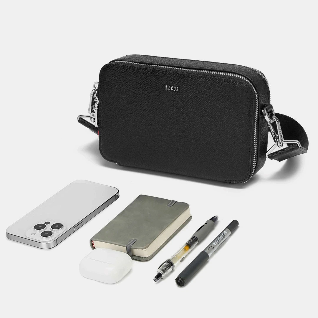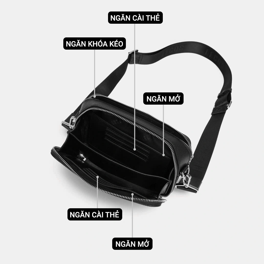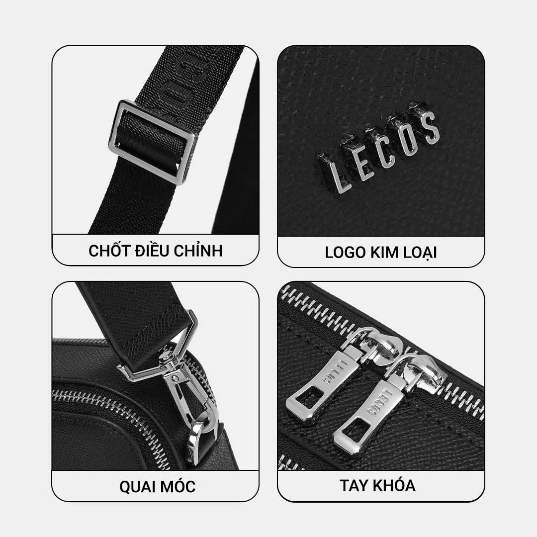 LECOS LT18 với thiết kế tương đối rộng rãi, có nhiều ngăn, có thể đựng điện thoại và nhiều đồ dùng cá nhân khácLogo LECOS được khắc trên móc cài, khoá kéo bằng kim loại màu bạc sang trọng tạo nên một tổng thể đẹp hoàn hảo và ấn tượngLogo LECOS màu bạc sang trọng được gắn mặt trước thân túi nổi bật thương hiệu và khẳng định chất lượng sản phẩm cao cấp chính hãng