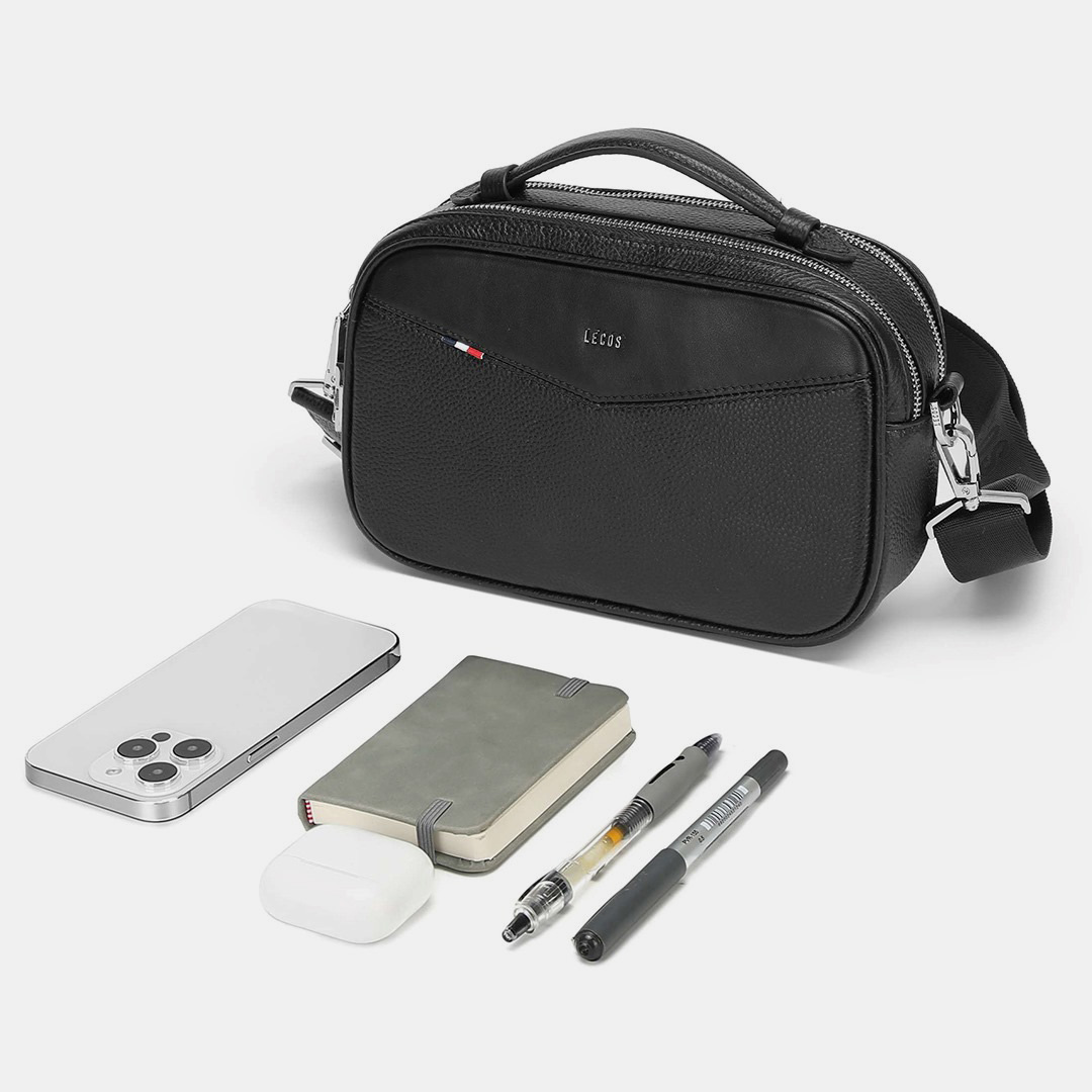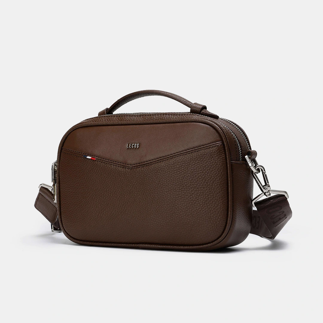LECOS LT3 với thiết kế tương đối rộng rãi, có nhiều ngăn, có thể đựng điện thoại và nhiều đồ dùng cá nhân khácLogo LECOS màu bạc sang trọng được gắn mặt trước thân túi; được khắc trên móc cài, khoá kéo bằng kim loại màu bạc sang trọng nổi bật thương hiệu và khẳng định chất lượng sản phẩm cao cấp chính hãng