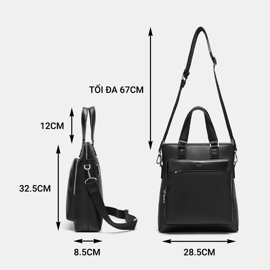Lưu ý: đối với kích thước, do có thể phương pháp đo lường khác nhau nên sẽ có sai số từ 1-3cmTúi với 1 ngăn chính lớn có khóa kéo, bên trong túi còn có thêm một ngăn mở & một ngăn có khóa kéo khác giúp quý ông dễ dàng sắp xếp đồ đạc ngăn nắp và tiện lợi