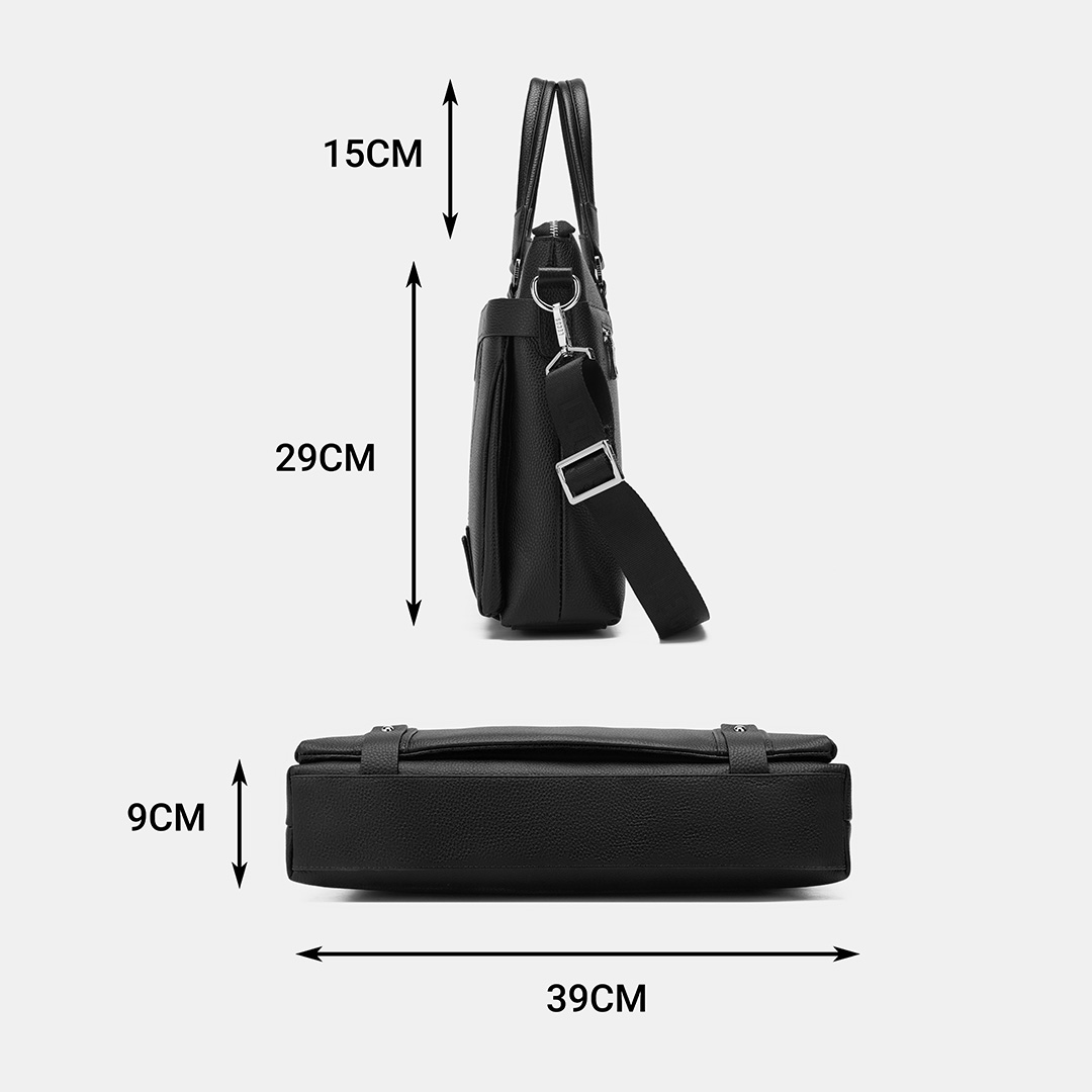 Lưu ý: đối với kích thước, do có thể phương pháp đo lường khác nhau nên sẽ có sai số từ 1-3cmTúi với 1 ngăn chính lớn có khóa kéo, bên trong túi còn có thêm một ngăn mở & một ngăn có khóa kéo; một ngăn đựng vừa laptop giúp quý ông dễ dàng sắp xếp đồ đạc ngăn nắp và tiện lợi
