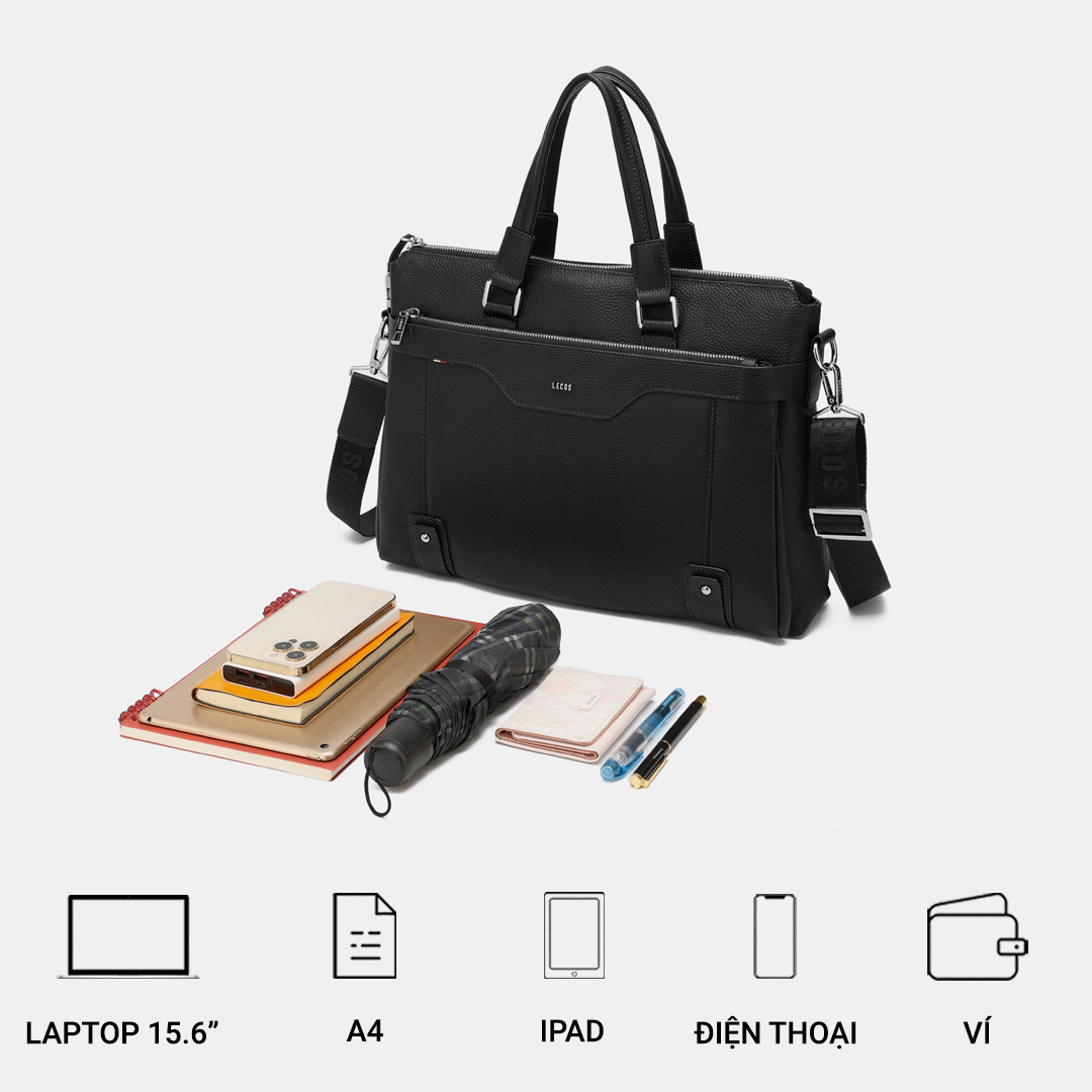 LECOS – LT15 với thiết kế rộng rãi, có nhiều ngăn, có thể đựng laptop, sổ sách, ipad, điện thoại và nhiều đồ dùng cá nhân khácNhững chi tiết trên túi được chế tác tỉ mỉ, là sự quan tâm của thương hiệu đến khách hàngThiết kế sang trọng phù hợp cho các cuộc gặp gỡ đối tác, khách hàng quan trọng