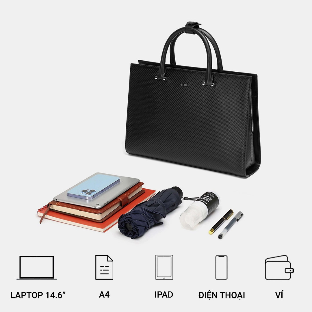 LECOS LT6 với thiết kế rộng rãi, có nhiều ngăn, có thể đựng laptop, sổ sách, ipad, điện thoại và nhiều đồ dùng cá nhân khácLogo LECOS được laser trên khóa số bằng kim loại màu bạc sang trọng tạo nên một tổng thể đẹp hoàn hảo và ấn tượngLựa chọn hoàn hảo của những quý ông có gu thời trang đẳng cấp, thời thượng