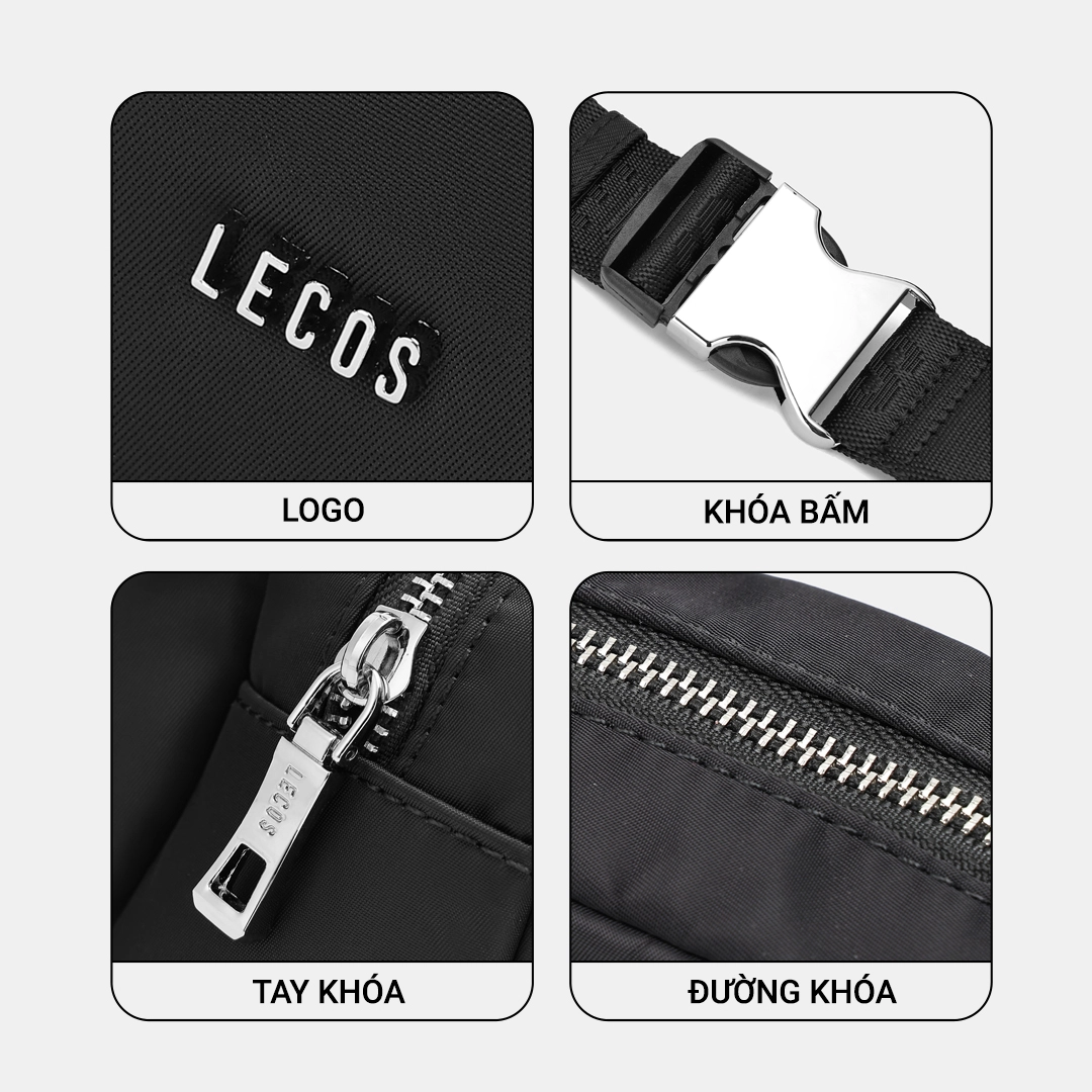Mặt trước gắn logo LECOS làm điểm nhấnForm túi gọn gàng, dễ mang theo hằng ngày.