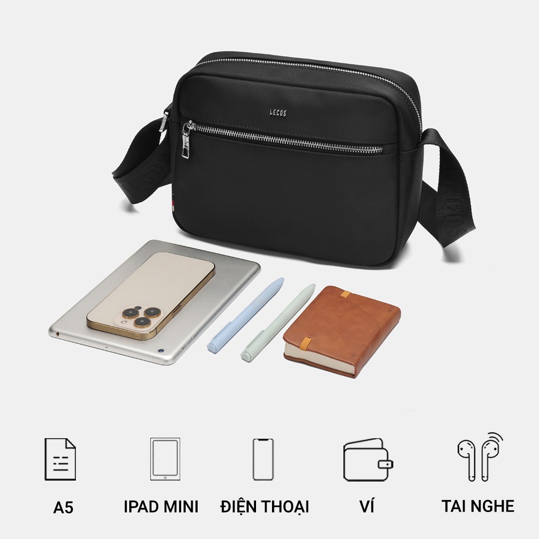 Túi nhỏ gọn nhưng vẫn đủ sức chứa mang để các quý ông mang theo những đồ cá nhân khi ra ngoàiTừng chi tiết được thiết kế tỉ mỉLogo LECOS là điểm nhấn tinh tế trên thân túiTúi có một ngăn kéo khóa phụ ở mặt trước