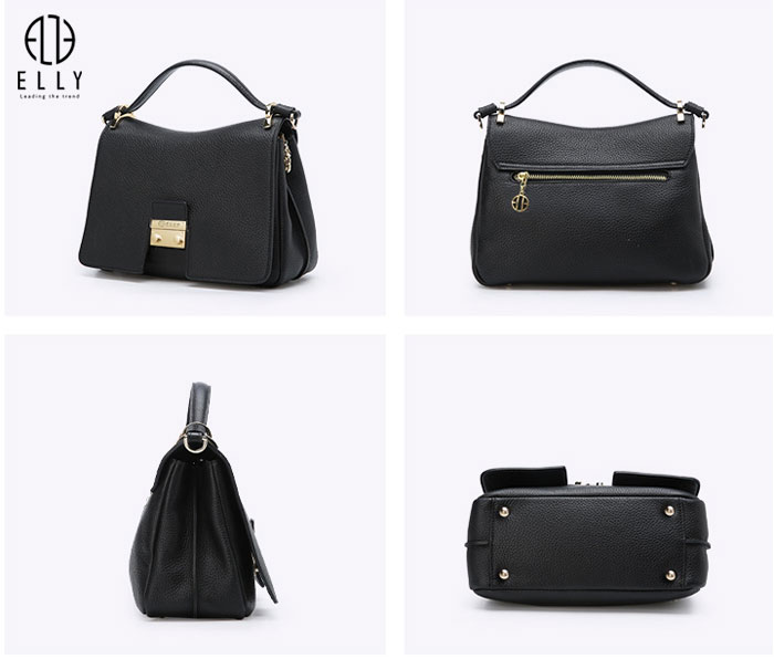 Sự quyến rũ của sản phẩm đến từ chính chất liệu da thật cao cấp nhập khẩu 100% mang đến cảm giác mềm mại và êm ái với từng đường kim mũi chỉ tỉ mỉ và đẹp tinh tếKhóa túi thiết kế hiện đại bằng hợp kim cao cấp mạ vàng sáng bóng có dập logo thương hiệu ELLY nhằm khẳng định nguồn gốc, xuất xứ sản phẩmKhóa kéo mạ vàng gắn logo sang trọngForm túi cứng cáp thời thượng, duyên dáng điểm tô cho bộ trang phục trở lên đẹp hoàn hảoĐáy túi nạm chân hợp kim cao cấp mạ vàng 4 góc chắc chắn