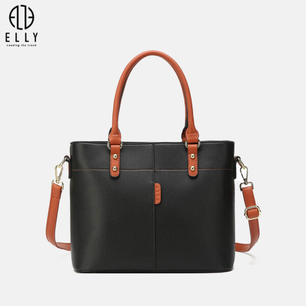 Sản phẩm hiện có 3 tone màu: đen, đỏ, trắngLưu ý: đối với kích thước, do có thể phương pháp đo lường khác nhau nên sẽ có sai số từ 1-3cmTúi có 2 ngăn chính lớn được ngăn cách nhau bởi 1 ngăn phụ giữa (có kéo khóa). Ngoài ra còn có 2 ngăn phụ ở 2 bên mặt túi (1 ngăn kéo khóa cộng đáp da in logo ELLY, 1 ngăn mở nhưng được chia tiếp thành 2 ngăn nhỏ nữa). Phía sau túi có một ngăn phụ có khoá kéo