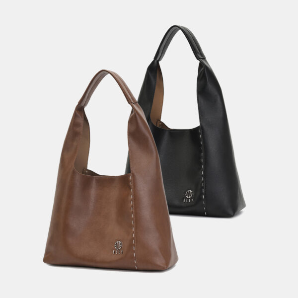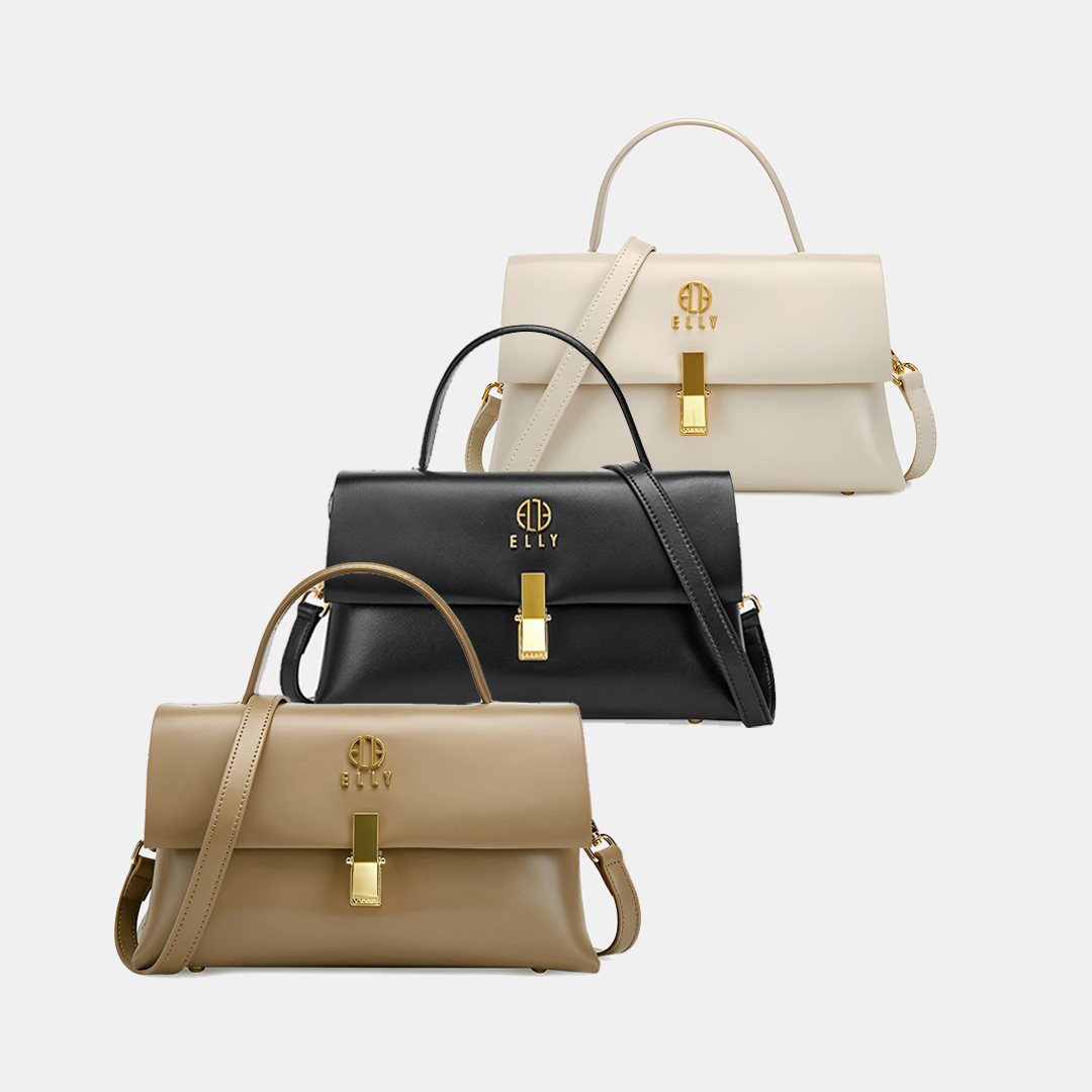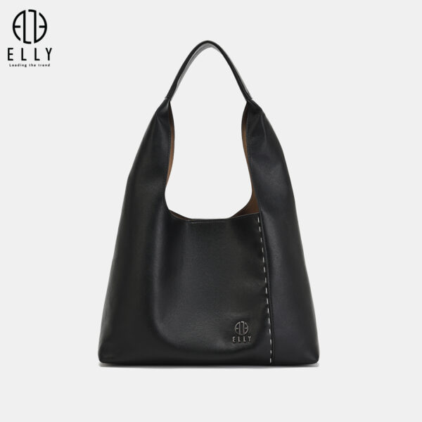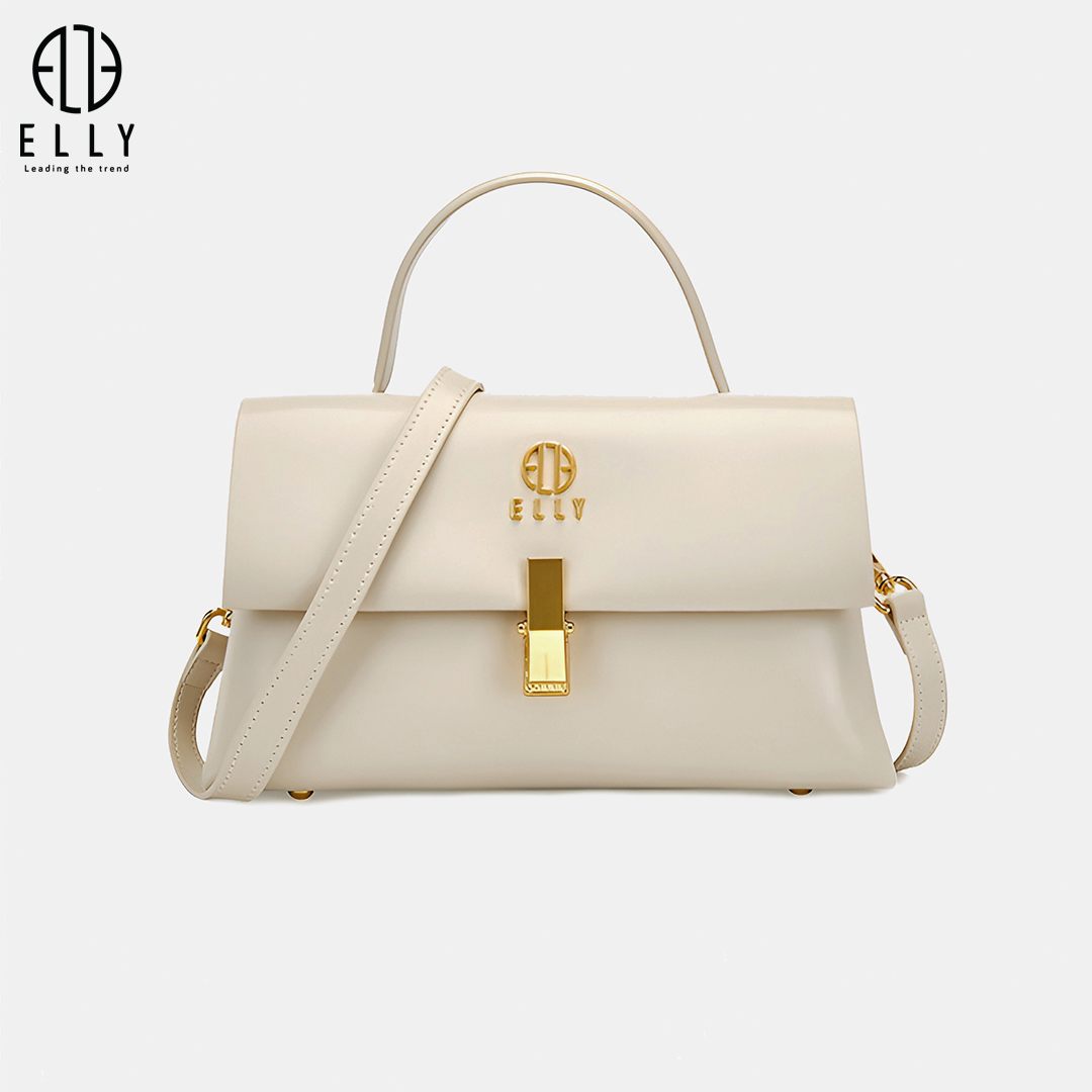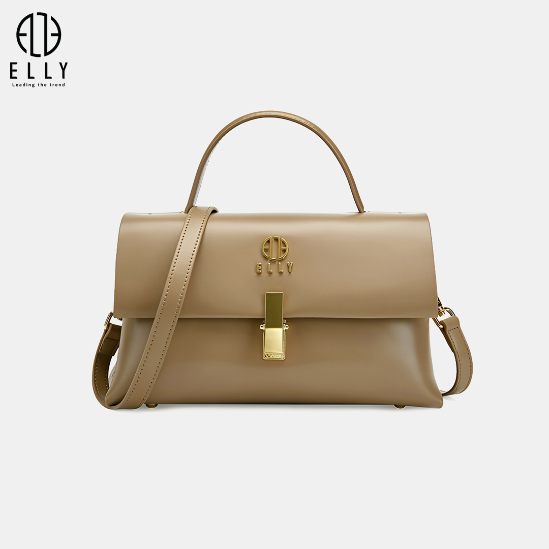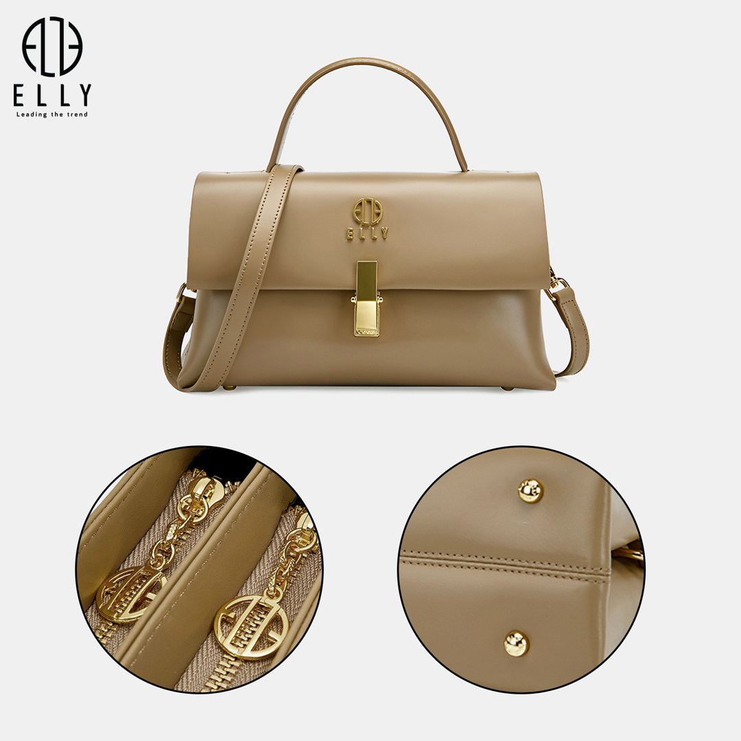 Logo ELLY vàng đồng nổi bật được gắn trước túi, tạo điểm nhấn cho phong cách và khẳng định thương hiệu