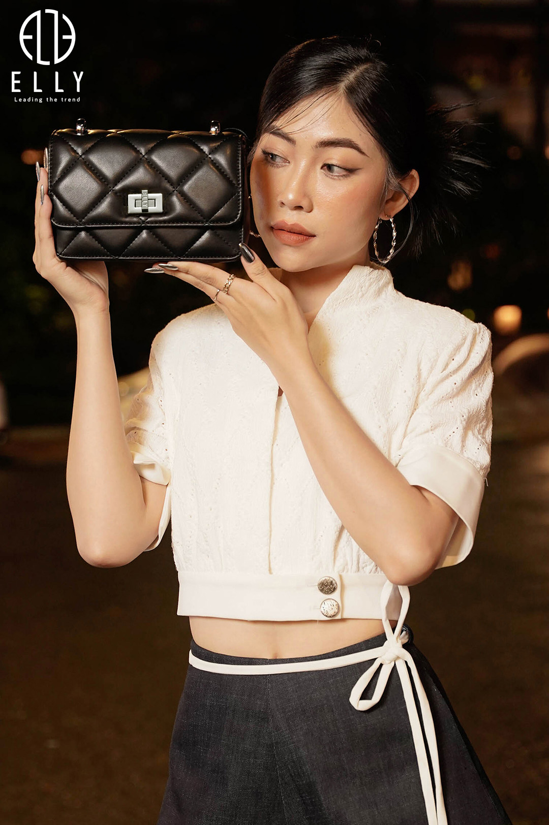 Chất liệu da cao cấp chần chỉ trám mang đến cảm giác mềm mại và êm ái với từng đường kim mũi chỉ tỉ mỉ và đẹp tinh tếCác sản phẩm ELLY đều được sản xuất từ chất liệu cao cấp, được kiểm tra, chọn lọc khắt khe. Quy trình sản xuất tỉ mỉ dưới bàn tay của những người thợ tâm huyết, lành nghề để mang đến những sản phẩm cao cấp, hoàn mỹ nhất cho khách hàng.Bao bì sản phẩm được thiết kế sang trọng, chuyên nghiệp theo bộ nhận diện của thương hiệu với đầy đủ túi, hộp, phụ kiện đi kèm để bảo quản sản phẩm và tôn lên vẻ đẹp tinh tế, sang trọng khi làm quà tặng cho người thân, bạn bè hoặc đối tác.ELLY hiện đang sở hữu hệ thống hơn 80 Showroom trên toàn quốc, với không gian đẳng cấp, sang trọng, hiện đại cùng đội ngũ nhân viên chuyên nghiệp, phong cách phục vụ tận tình chu đáo nhằm mang đến trải nghiệm tốt cho khách hàng. Ngoài ra các kênh bán hàng online cũng được đầu tư bài bản, giao hàng nhanh miễn phí tới tận tay khách hàng trên toàn quốc.