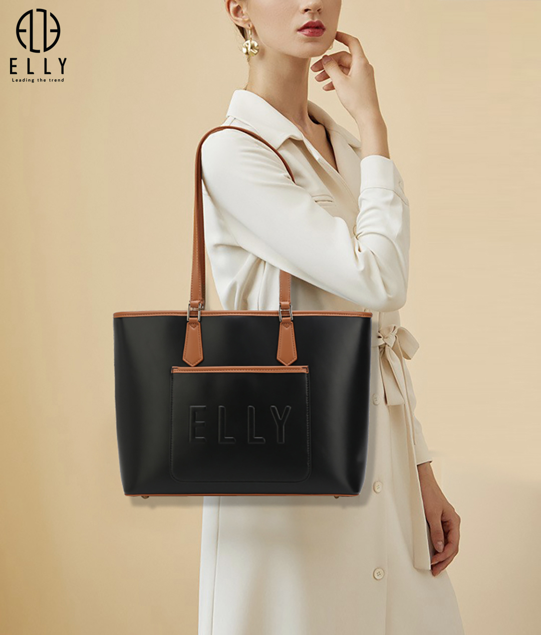 ELLY dập nổi trên thân túi càng chiếc túi thêm nổi bật