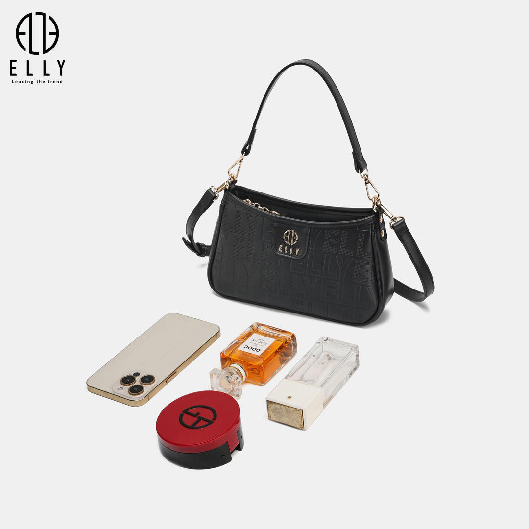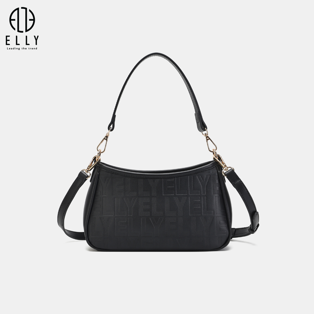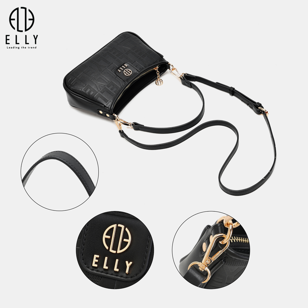 Logo ELLY được dập nổi tinh xảo trên bề mặt túi, tạo điểm nhấn và thể hiện đẳng cấp thương hiệuLogo ELLY vàng đồng nổi bật được gắn trước túi, tạo điểm nhấn cho phong cách và khẳng định thương hiệu