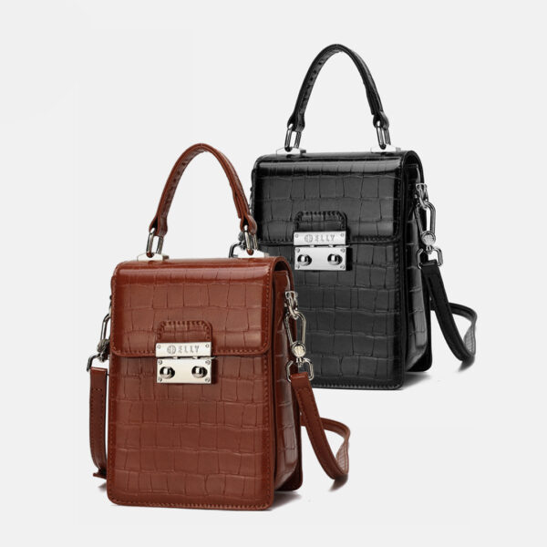 – Thương hiệu: ELLY. – Sản xuất: Trung Quốc (theo tiêu chuẩn chất lượng của thương hiệu ELLY). – Màu sắc: Đen, nâu. – Kích thước: 12 x 17.5 x 7.5 cm (chiều ngang x chiều dọc x độ dày). – Chất liệu: Da tổng hợp cao cấp. – Kiểu dáng: Túi đeo chéo, đeo vai, xách tay. – Công năng sử dụng: Đựng điện thoại, ví, đồ dùng cá nhân, bút, sổ tay nhỏ,… – Trọn bộ sản phẩm gồm: Túi xách nữ thời trang ELLY – EL324 + Túi đựng sản phẩm + Hộp. – Bảo hành: 03 tháng (với lỗi do sản xuất).