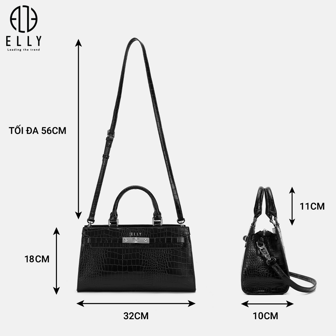Tên thương hiệu ELLY được dập chìm trên bề mặt da cao cấp mang lại cảm giác sang trọng trong từng chuyển động