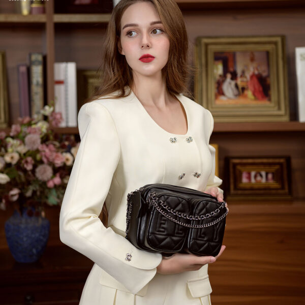 Với thiết kế nhỏ gọn, túi có thể đựng được: điện thoại, mỹ phẩm, nước hoa, sổ tay,…Từng điểm chạm trên chiếc túi đều được thiết kế một cách tinh xảo, mang lại cảm giác sang trọng, đẳng cấp cho phái đẹp