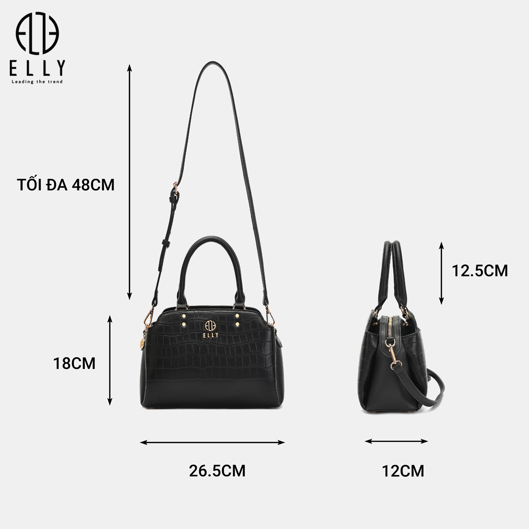 Túi xách nữ EL358 sở hữu thiết kế dáng hộp thanh lịch, nổi bật với bề mặt da dập vân cá sấu sang trọng và logo ELLY kim loại tinh tế ở mặt trước. Form túi cứng cáp, giữ dáng tốt, mang đến vẻ ngoài chỉn chu và đẳng cấp cho người sử dụng. Tay cầm chắc chắn kết hợp dây đeo chéo tháo rời linh hoạt, phù hợp từ môi trường công sở đến dạo phố. Gam màu đen và đỏ thời thượng giúp nàng dễ dàng phối cùng nhiều phong cách khác nhau.