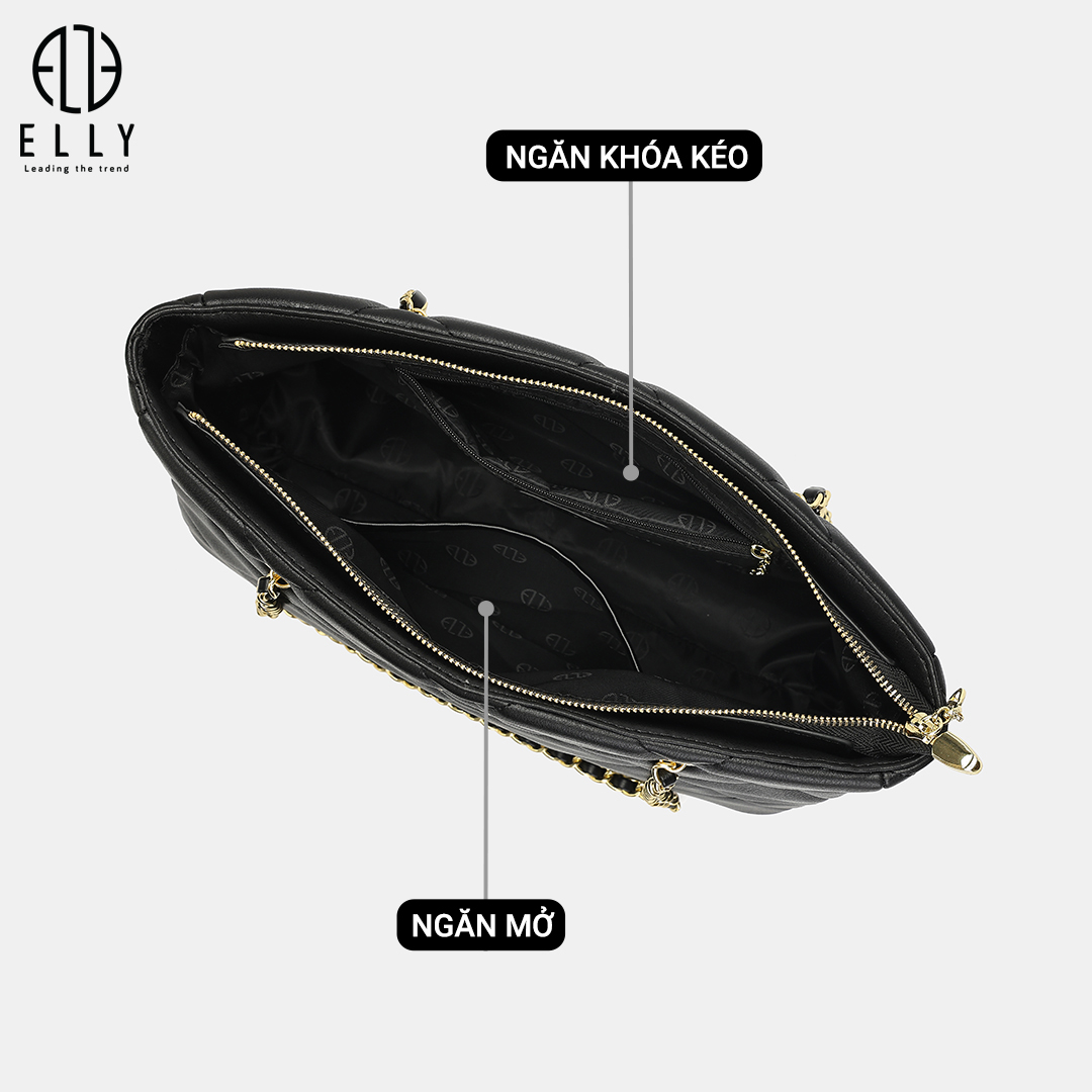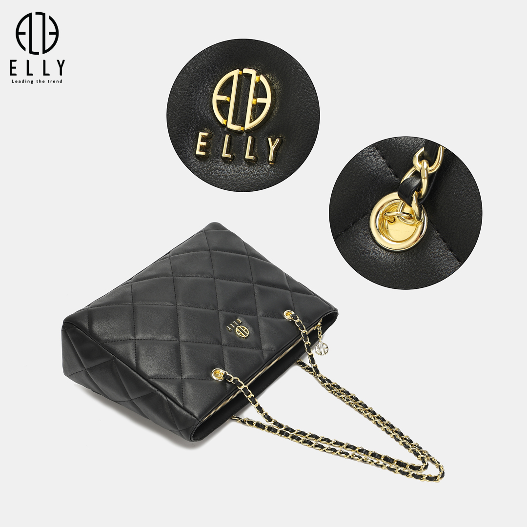 Dây đeo thiết kế xích bản nhỏ kết hợp cùng kim loại ánh vàng đan xen tinh tế, tạo điểm nhấn sang trọng và thanh lịch cho tổng thể chiếc túi.Các sản phẩm ELLY đều được sản xuất từ chất liệu cao cấp, được kiểm tra, chọn lọc khắt khe. Quy trình sản xuất tỉ mỉ dưới bàn tay của những người thợ tâm huyết, lành nghề để mang đến những sản phẩm cao cấp, hoàn mỹ nhất cho khách hàng.Bao bì sản phẩm được thiết kế sang trọng, chuyên nghiệp theo bộ nhận diện của thương hiệu với đầy đủ túi, hộp, phụ kiện đi kèm để bảo quản sản phẩm và tôn lên vẻ đẹp tinh tế, sang trọng khi làm quà tặng cho người thân, bạn bè hoặc đối tác.ELLY hiện đang sở hữu hệ thống hơn 80 Showroom trên toàn quốc, với không gian đẳng cấp, sang trọng, hiện đại cùng đội ngũ nhân viên chuyên nghiệp, phong cách phục vụ tận tình chu đáo nhằm mang đến trải nghiệm tốt cho khách hàng. Ngoài ra các kênh bán hàng online cũng được đầu tư bài bản, giao hàng nhanh miễn phí tới tận tay khách hàng trên toàn quốc.