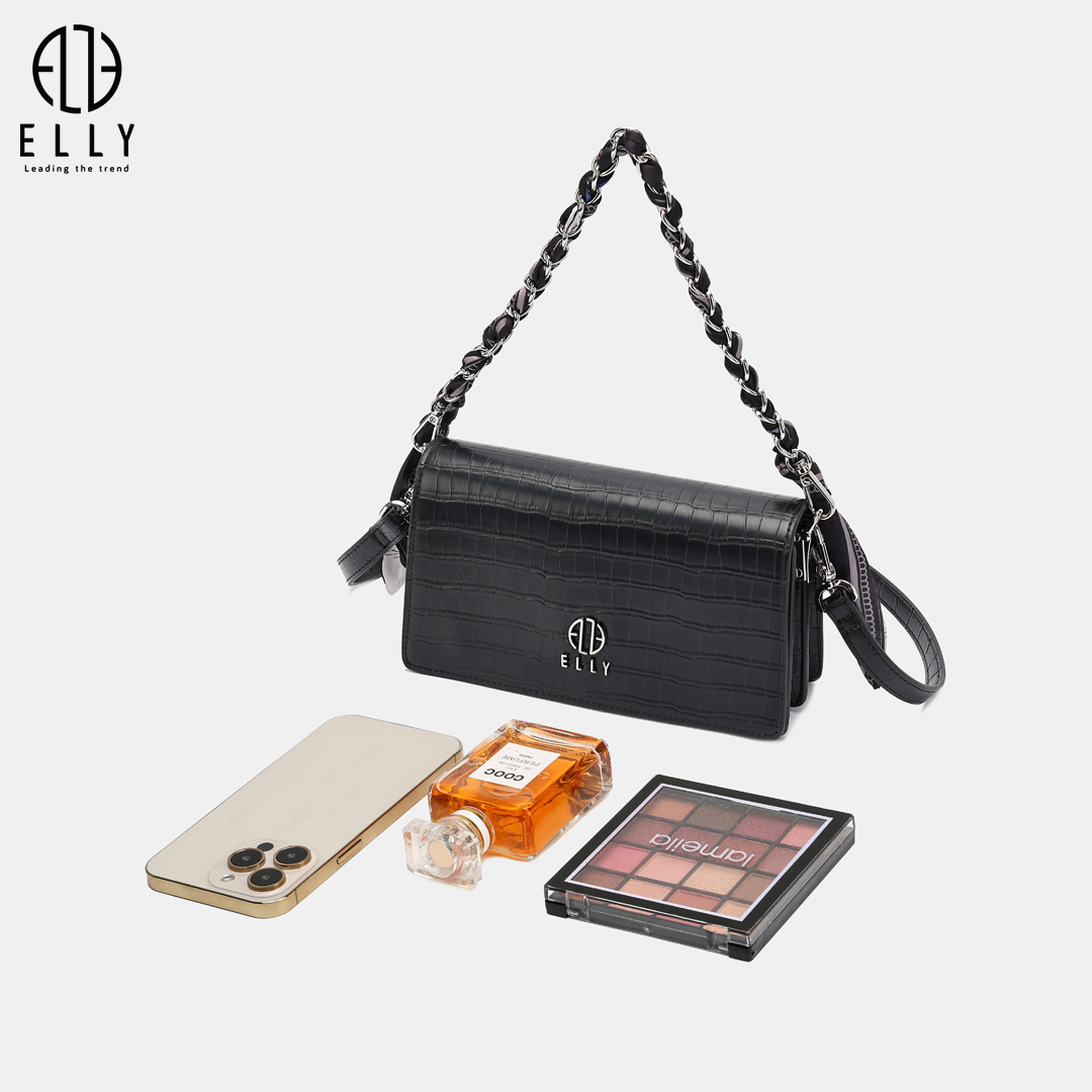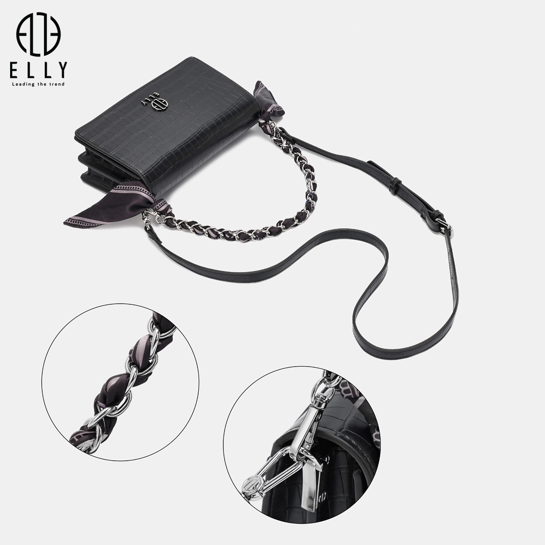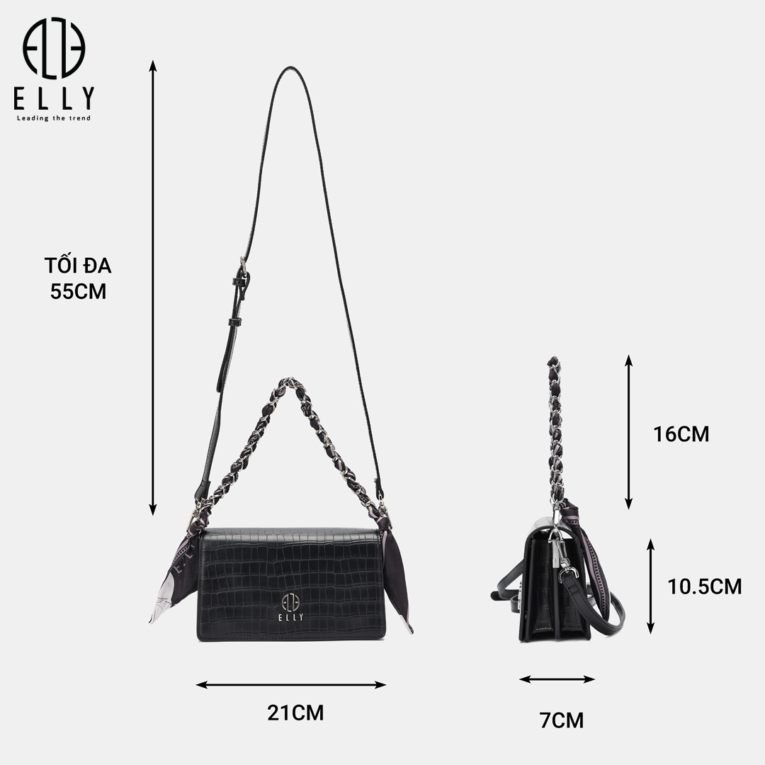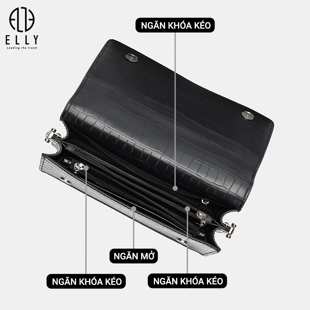 Mặt trước gắn logo ELLY dạng kim loại bạc sắc nét, làm tăng vẻ nhận diện thương hiệu và sự sang trọng của túi.Ngăn phụ tiện dụngCác sản phẩm ELLY đều được sản xuất từ chất liệu cao cấp, được kiểm tra, chọn lọc khắt khe. Quy trình sản xuất tỉ mỉ dưới bàn tay của những người thợ tâm huyết, lành nghề để mang đến những sản phẩm cao cấp, hoàn mỹ nhất cho khách hàng.Bao bì sản phẩm được thiết kế sang trọng, chuyên nghiệp theo bộ nhận diện của thương hiệu với đầy đủ túi, hộp, phụ kiện đi kèm để bảo quản sản phẩm và tôn lên vẻ đẹp tinh tế, sang trọng khi làm quà tặng cho người thân, bạn bè hoặc đối tác.