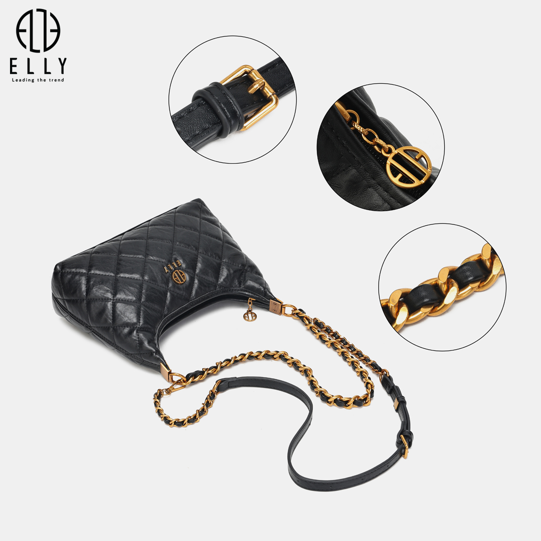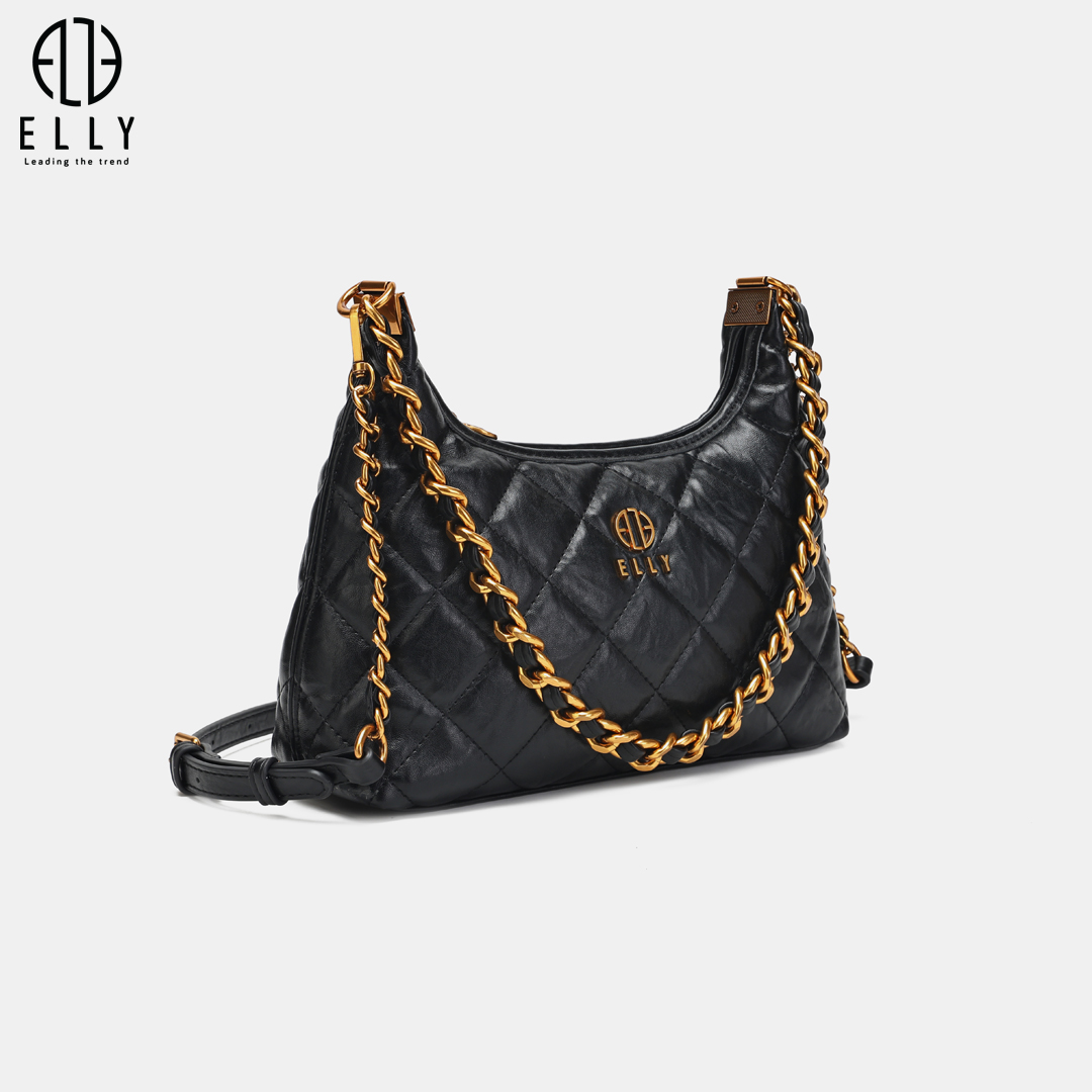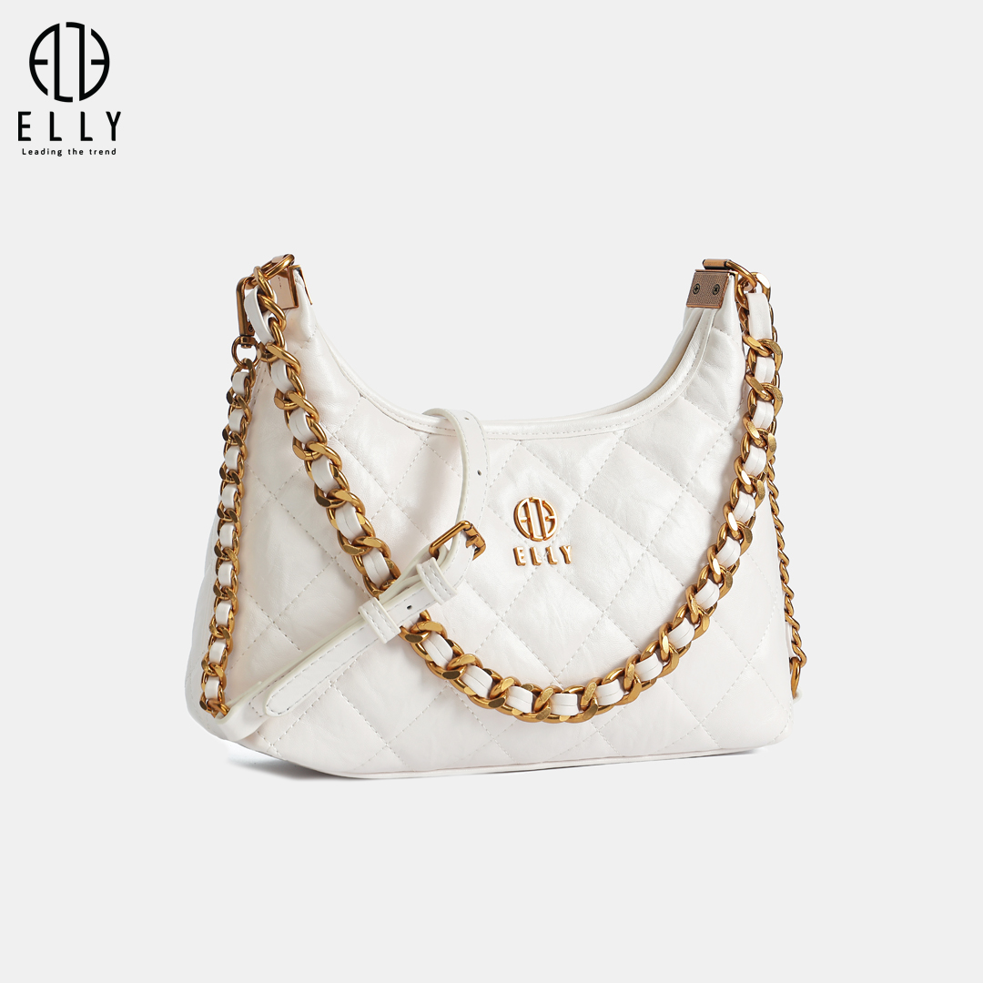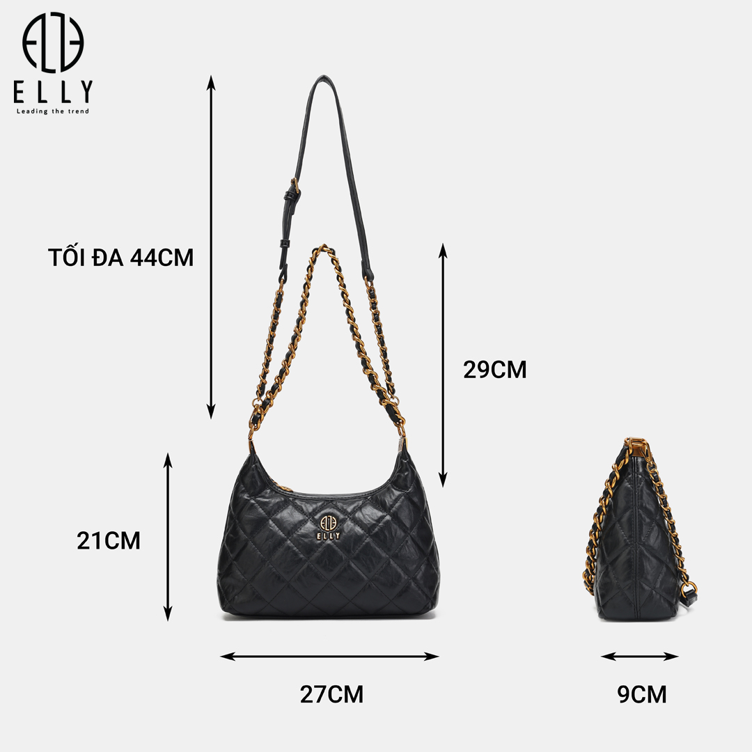 Chinh phục mọi ánh nhìn với túi xách nữ thời trang ELLY – EL382 cá tính, thiết kế form cong độc đáo kết hợp họa tiết chần ô sang trọng. Quai xích kim loại mạnh mẽ tạo điểm nhấn táo bạo, trong khi quai da có thể điều chỉnh mang lại sự tiện lợi tối đa. Hãy để chiếc túi này đồng hành, khẳng định phong cách thời thượng và vẻ đẹp cuốn hút của bạn.