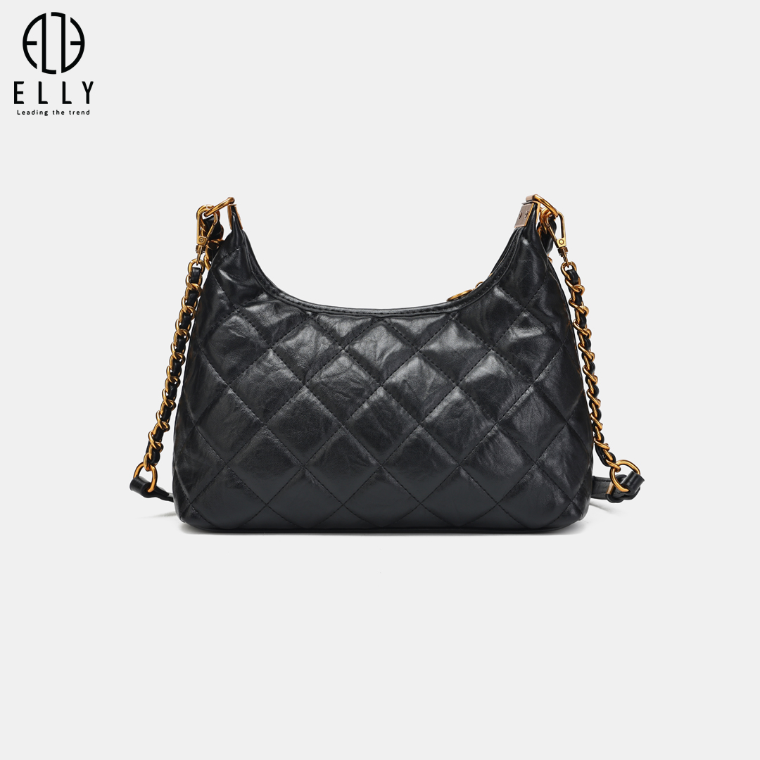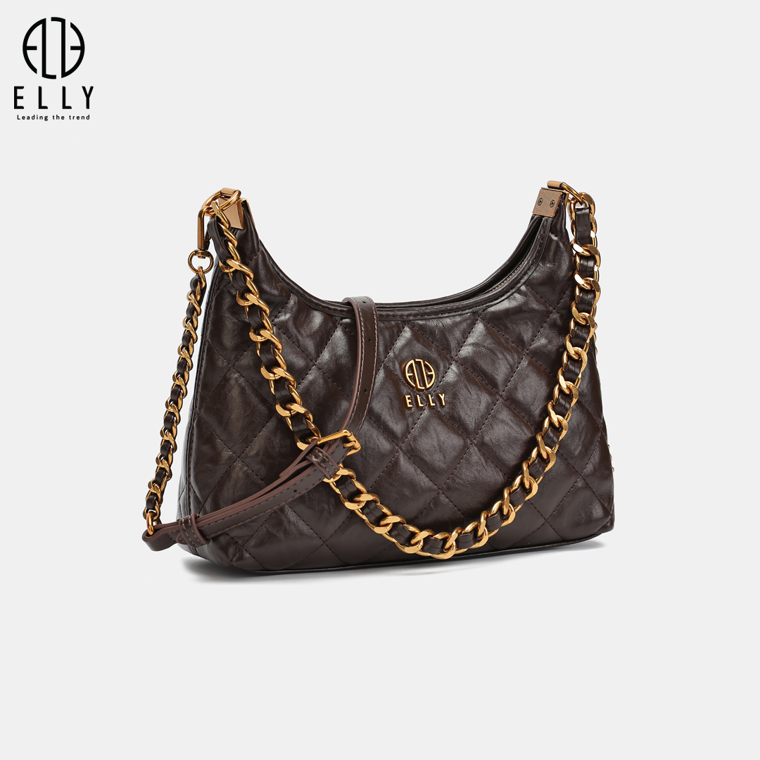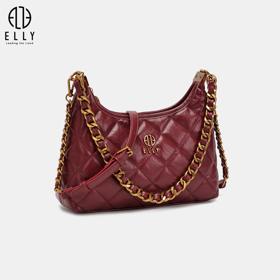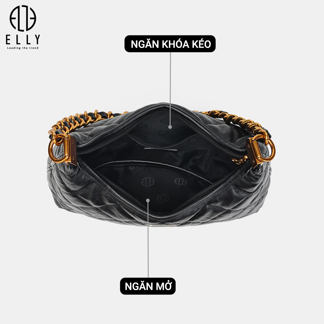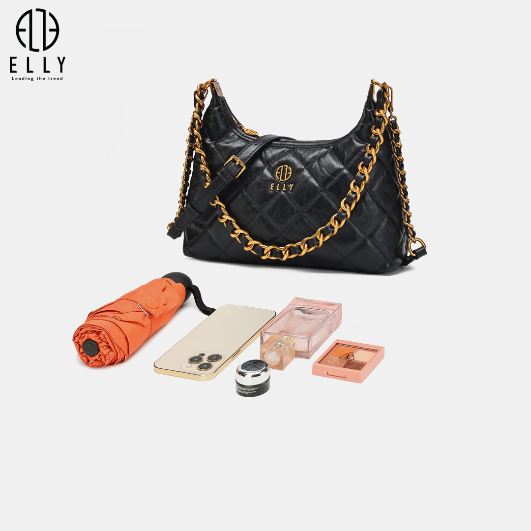Chinh phục mọi ánh nhìn với túi xách nữ thời trang ELLY – EL382 cá tính, thiết kế form cong độc đáo kết hợp họa tiết chần ô sang trọng. Quai xích kim loại mạnh mẽ tạo điểm nhấn táo bạo, trong khi quai da có thể điều chỉnh mang lại sự tiện lợi tối đa. Hãy để chiếc túi này đồng hành, khẳng định phong cách thời thượng và vẻ đẹp cuốn hút của bạn.