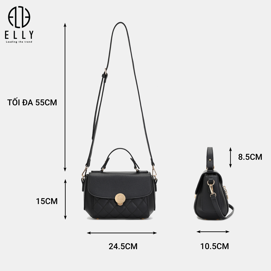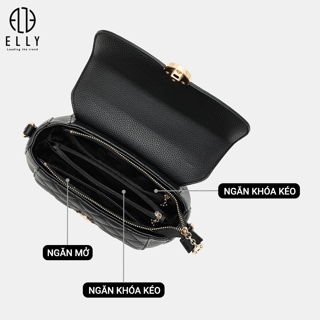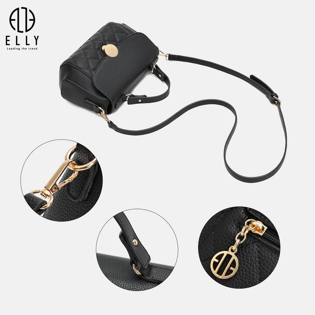 Điểm nhấn của EL387 nằm ở họa tiết chần chỉ ô trám phía dưới thân túi và mặt sau, mang đến nét cổ điển nhưng không kém phần tinh xảo và thu hút.Thiết kế khóa túi tinh xảo, được khắc logo ELLY tỉ mỉ, vừa đảm bảo an toàn vừa tạo điểm nhấn thời trang nổi bật