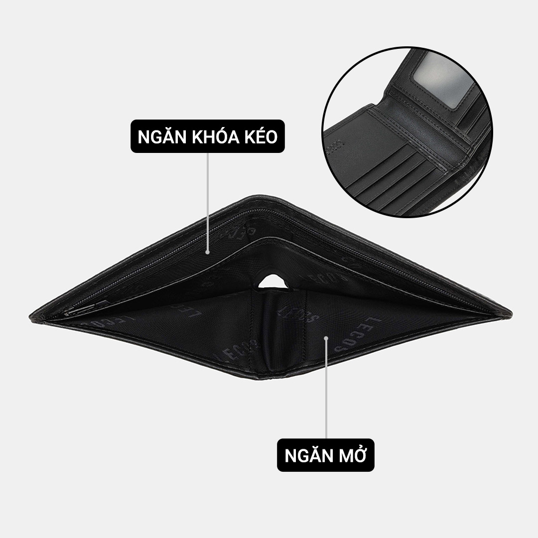 Ví da thật LECOS – LV12 với thiết kế màu sắc thời thượng, là phiên bản ví hiện đại dành cho những quý ông sành điệuPhiên bản màu đen sang trọng, lịch lãm