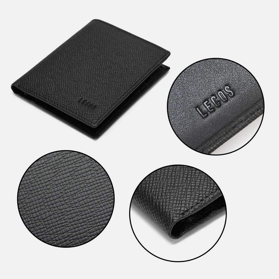 Tên thương hiệu LECOS được dập bên trong và mặt trước ví sang trọng nổi bật nhằm khẳng định chất lượng sản phẩm cao cấp chính hãng